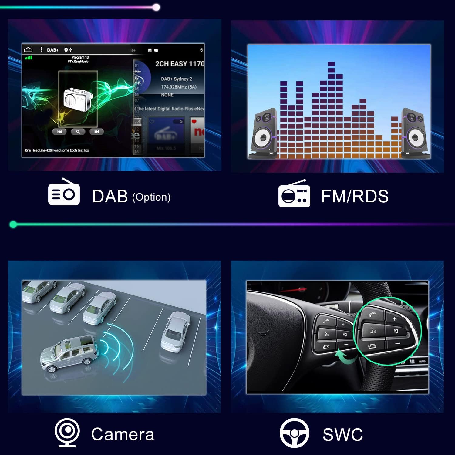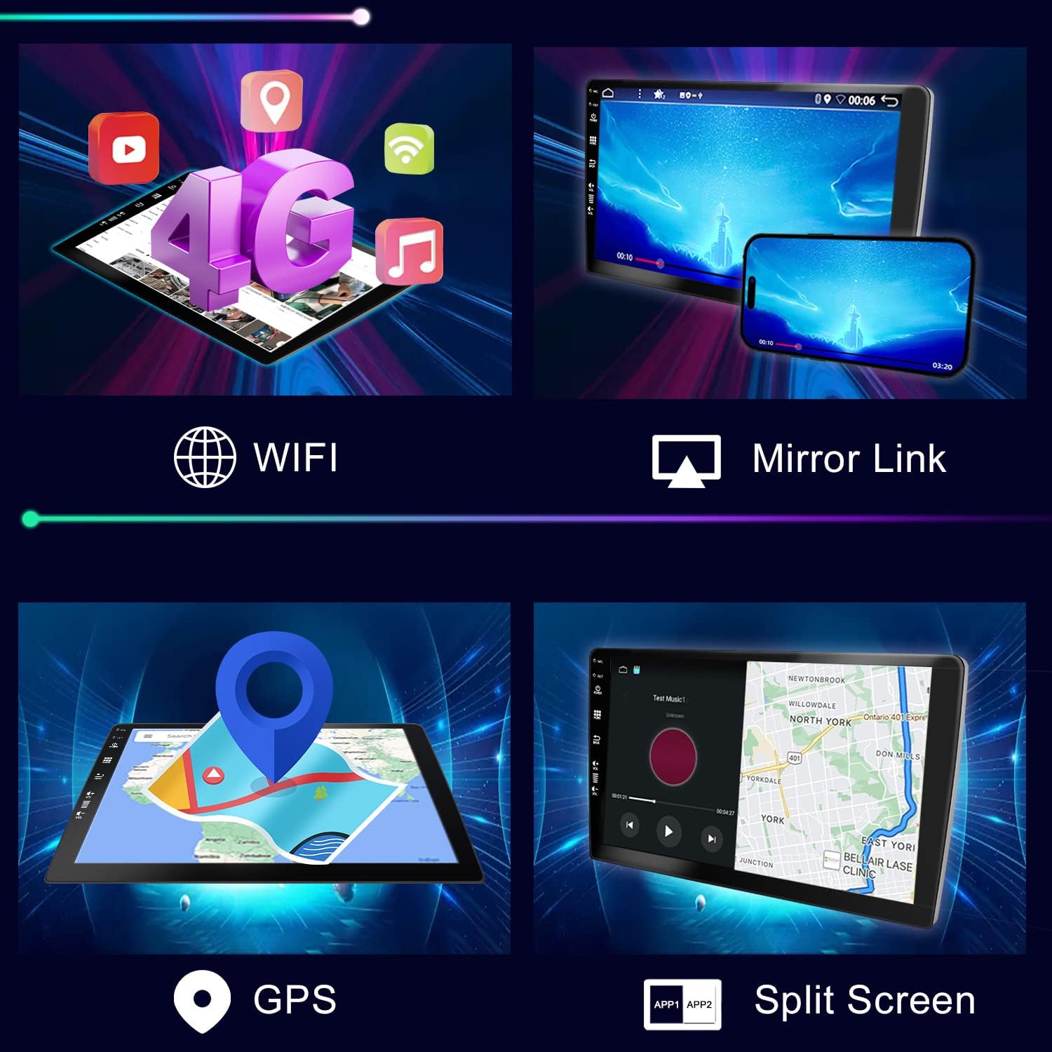 - 【Split Screen & FM AM Radio】 Der Split-Screen-Modus ermöglicht die Ausführung von zwei Apps nebeneinander. Sie können Spotify beim Navigieren verwenden. Eingebautes UKW-AM-RDS-Radio