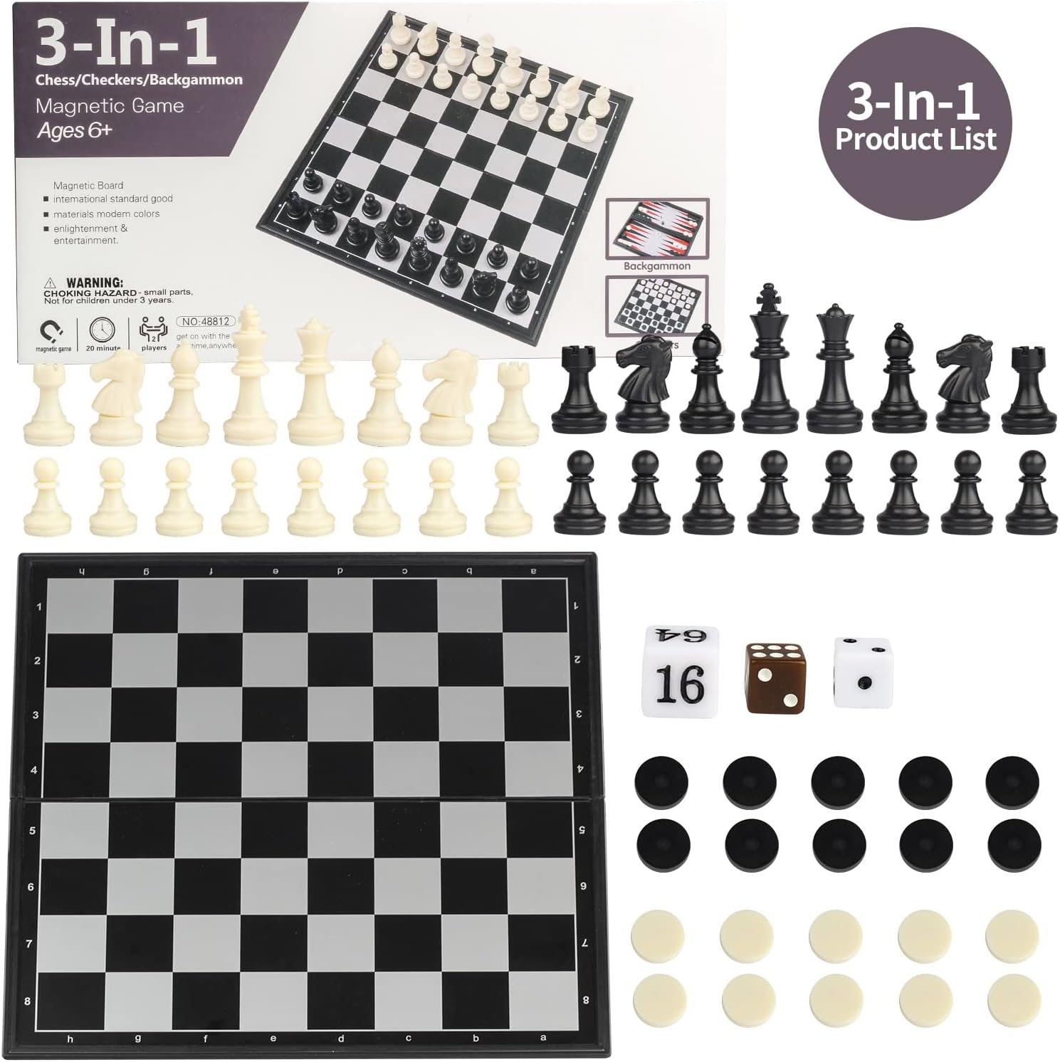 - Magnetische Spielfiguren, die Unterseite der Stücke haben Filz, um das Brett zu schützen, reduzieren Verschleiss und Lärm.