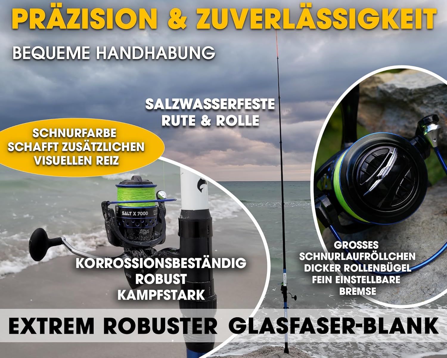 • Das perfekte Einsteiger Angelset für das Salzwasser angeln vom Ufer