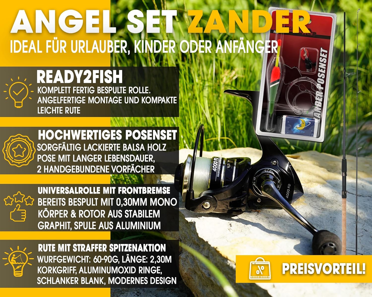 • Die Angelsets sind auf den jeweiligen Zielfisch abgestimmt.