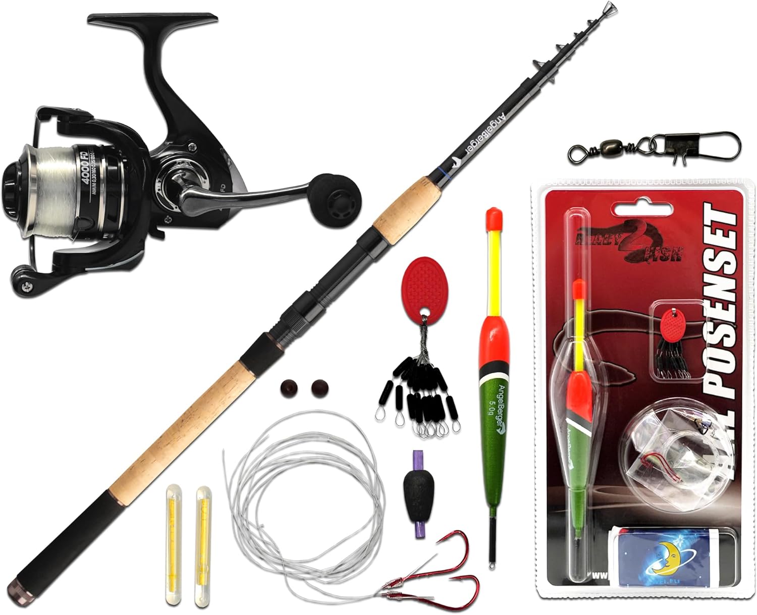 Angel-Berger Tele Angelset Rute Rolle mit Zubehör Angelset Aal