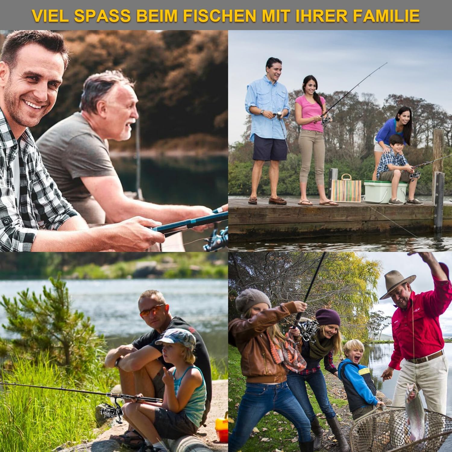 - Komplettset Angelrute: 1 Angelrute 2,7 m, 1 Spinnrolle, 1 Angelschnur, 1 Zubehörtasche (Anschlüsse, verschiedene Köder und Haken), 1 Transporttasche. Das komplette Perfect Fishing Combos-Kit ist speziell für Anfänger gedacht, was bedeutet, dass