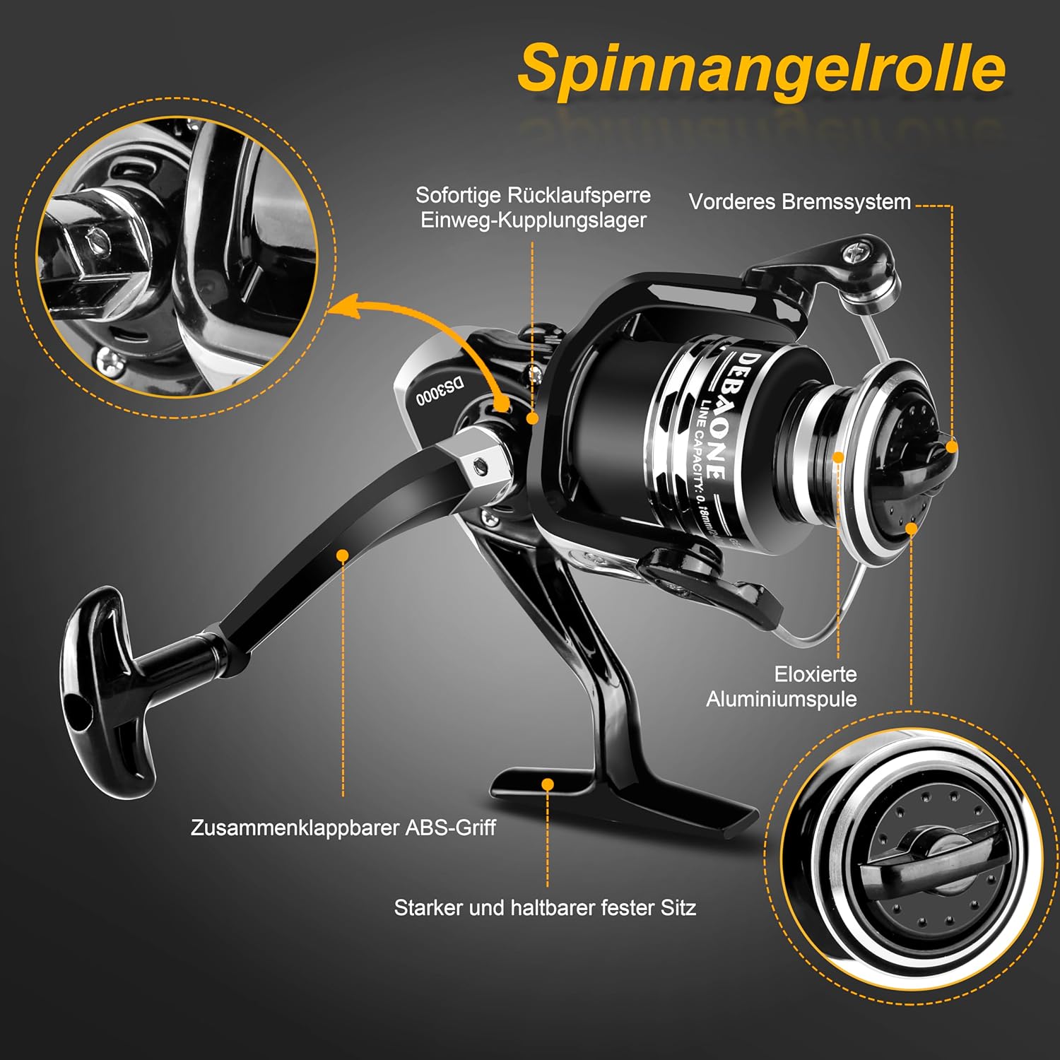 - Leistungsstarke Spinnrolle: Die Angelrolle hat präzise abgestimmte Zahnräder und ein leistungsstarkes 5,2:1 Übersetzungsverhältnis. Der Anti-Rückwärts-Sofortstopp-Schalter ist unerlässlich, um einen grossen Fisch an der leichten Schnur richtig zu
