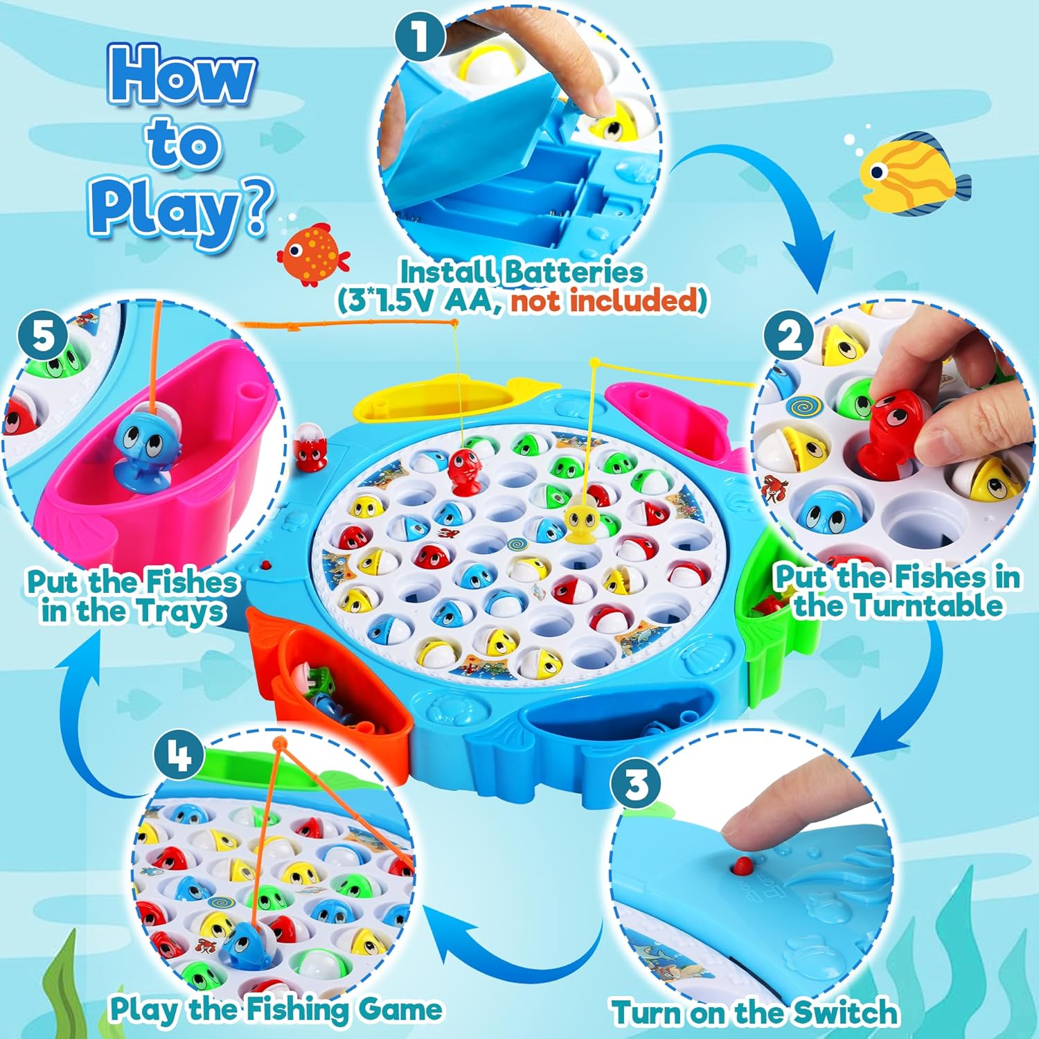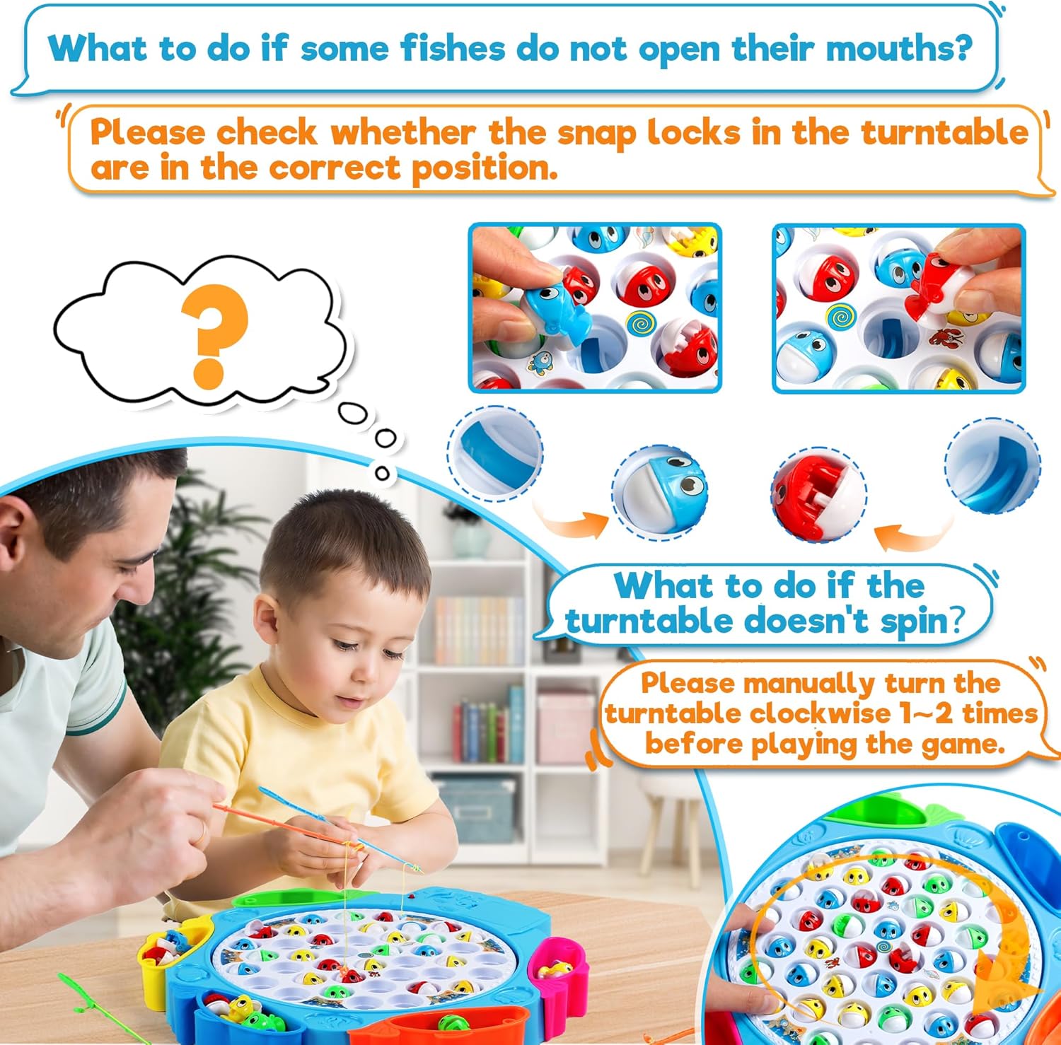 • Musikalisches kinder brettspiele ab 3 jahre: Dieses kinderspiele enthält 8 Angelruten und 42 Fische, mit denen Kinder in einem Angelspiel gegeneinander antreten können. Mit dem Umlegen eines Schalters öffnen die Fische ihre Mäuler und drehen sich im