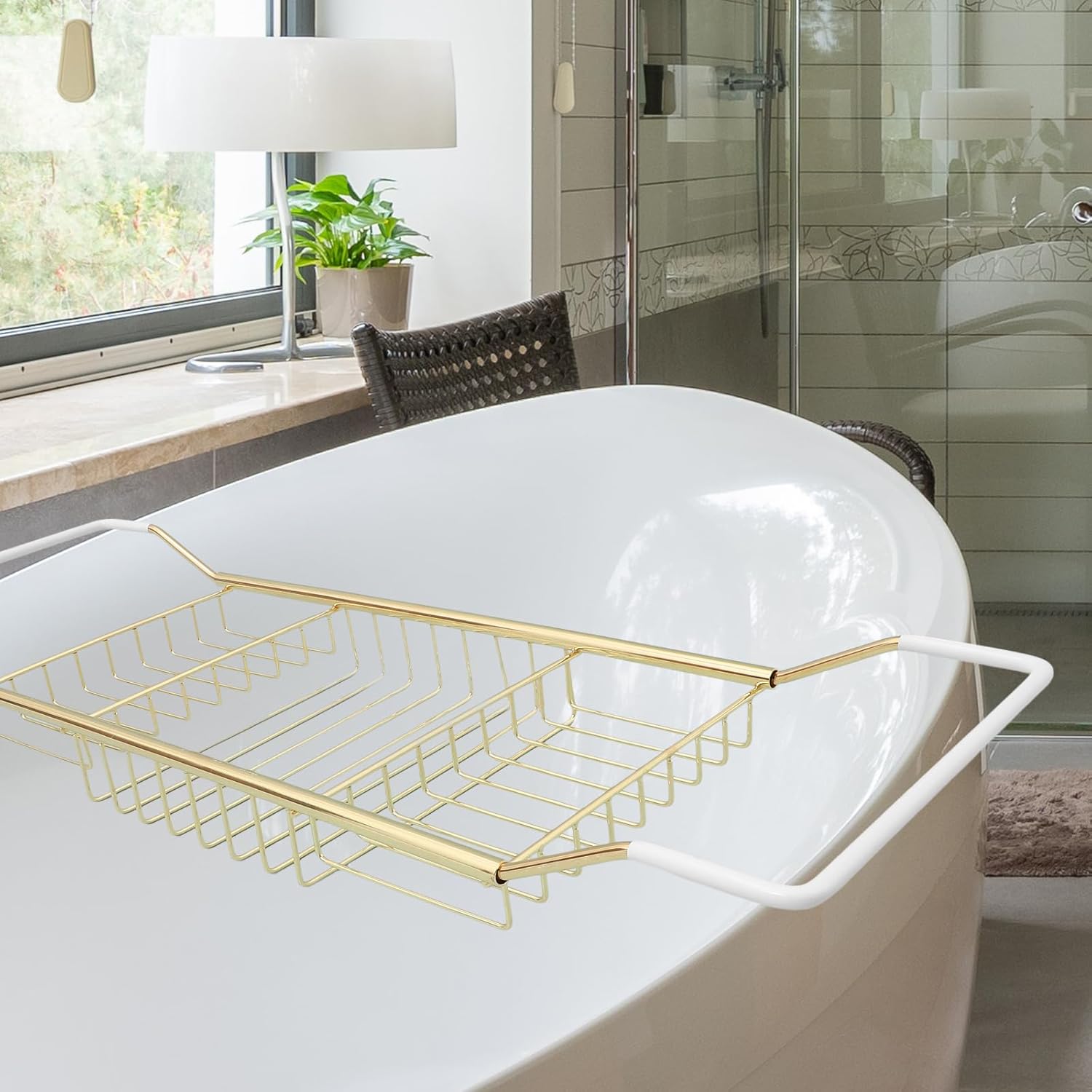 - Erweiterbare Badewannenablage aus Metall – die verstellbaren Halterungen bieten Platz für Zeitschriften, Bücher oder andere Lesematerialien, Weingläser usw