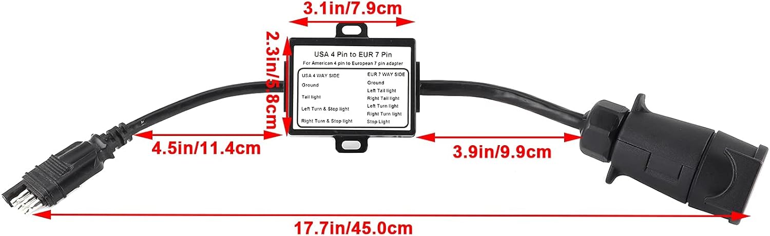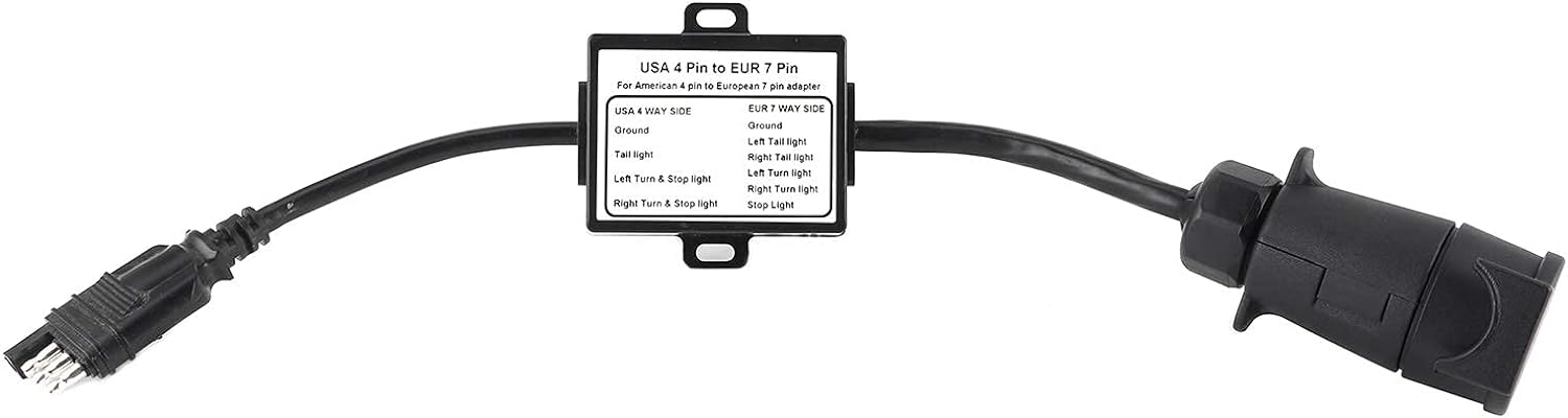 - Ideale elektrische Lösung ---- Anhänger Stecker hat sich zum Ziel gesetzt, einen amerikanischen 4-poligen Fahrzeugstecker in einen 7-poligen europäischen Adapter umzuwandeln. Ideale elektrische Lösung zum Ziehen von US-Fahrzeugen mit 4-Wege-Flat und europäischem Anhänger mit einem 7-Wege-Rundstift.