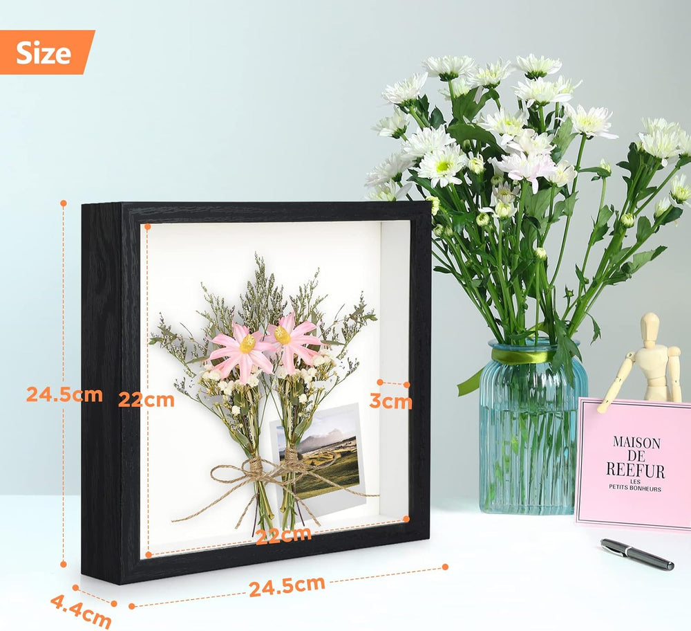 - 【Grösse】Bilderrahmen zum befüllen äussere grösse: 24,5 x 24,5 x 4,4 cm (9,64 x 9,64 x 1,73 Zoll); Die Innen grösse: 22 x 22 cm (8,66 x 8,66 Zoll); Abmessungen der Backplane: 23 x 23 x 3 cm (9 x 9 x 1,18 Zoll). 3D Bilderrahmen können an Ihrer