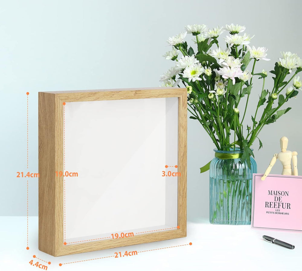 - 【Grösse】Bilderrahmen zum befüllen äussere grösse: 21,4 x 21,4 x 4,4 cm (8,42 x 8,42 x 1,73 Zoll); Die Innen grösse: 20 x 20 cm (8 x 8 Zoll), Innen tiefe: 3 cm (1,18 Zoll). 3D Bilderrahmen können an Ihrer Wand, Ihrem Schreibtisch oder Ihrer