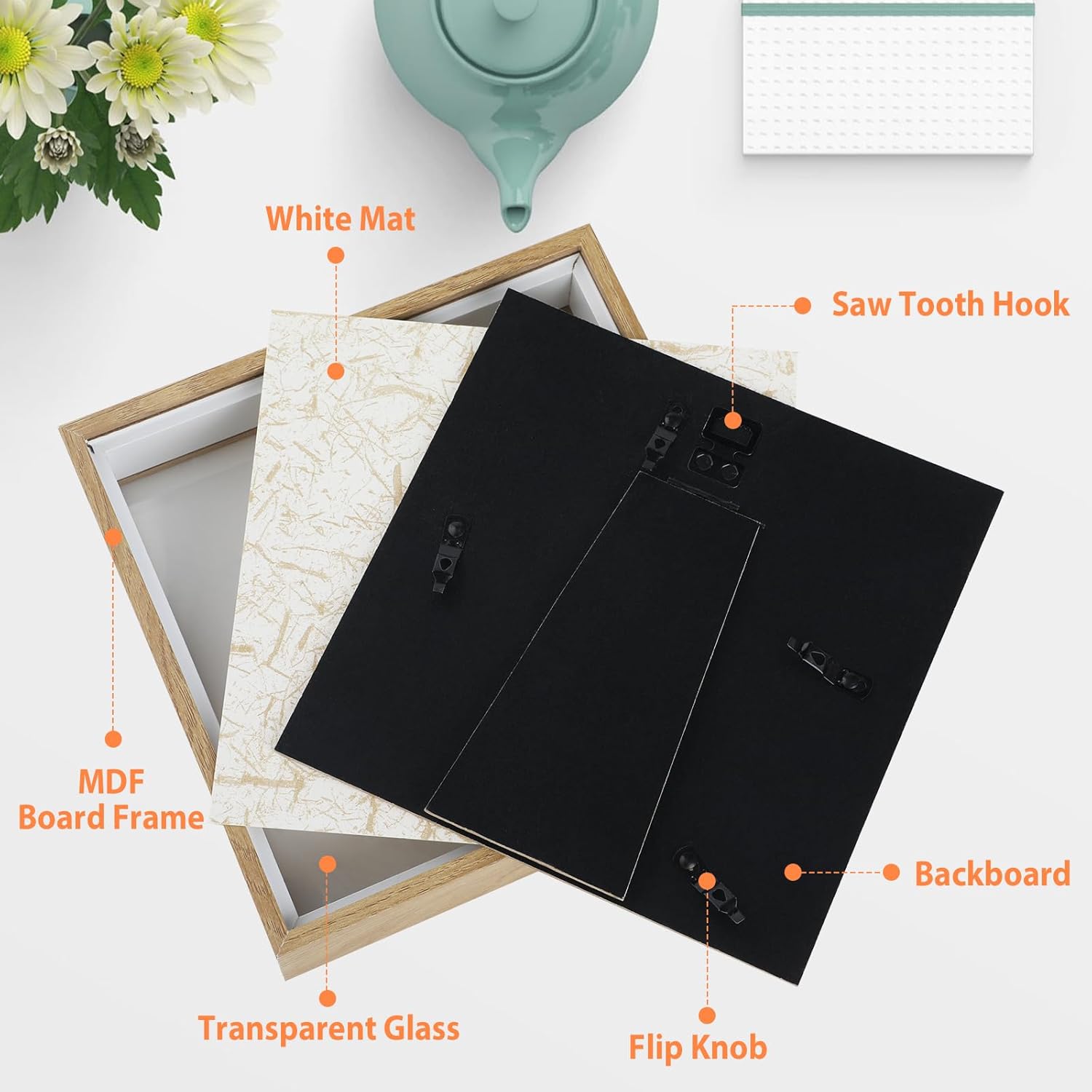 - 【Material】Die objektrahmen besteht aus wasserdichtem MDF Material, und eine sichere, leichte, bruchsichere, transparente Glasscheibe könnte besser vor Kratzern schützen. Dieses Material ist sicher für Kinder.