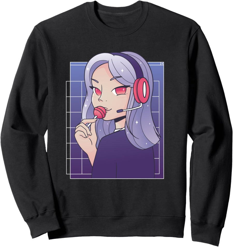 Anime Gamer Girl mit Headset & Lollipop | Niedliches Motiv Sweatshirt