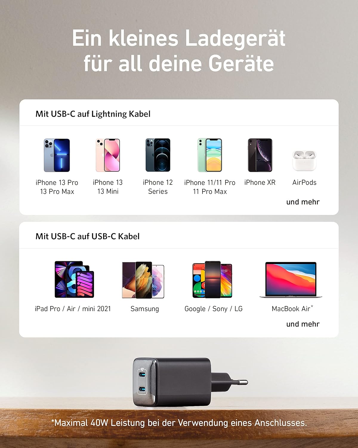 - 40W LADEPOWER: Einfach dein MacBook Air an einen der beiden Anschlüsse verbinden und mit Höchstgeschwindigkeit aufladen.