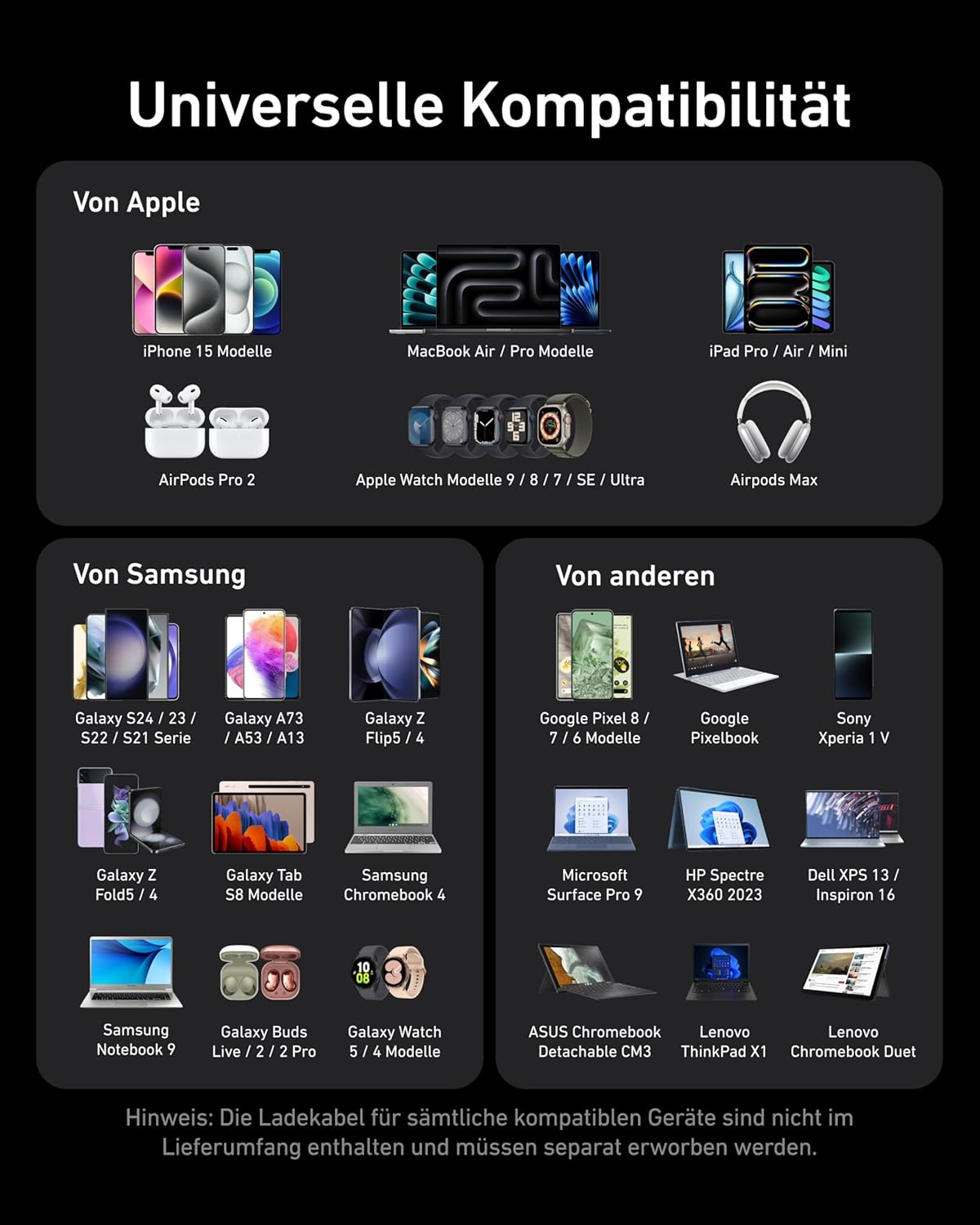 - 6 Geräte, 1 Ladegerät: Lade bis zu 6 Geräte gleichzeitig und an einem Ort, sodass du immer sicher sein kannst, dass alles geladen und bereit ist.