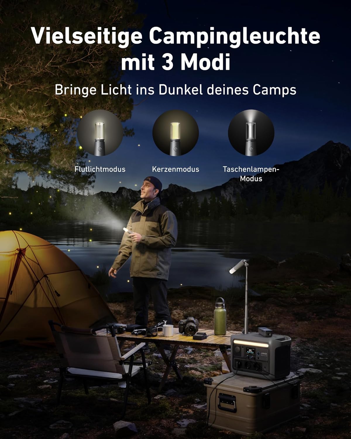 - VIELSEITIGE CAMPINGBELEUCHTUNG MIT 3 MODI: Die Powerstation mit Campingbeleuchtung macht das Outdoor-Erlebnis so einzigartig wie keine andere Powerstation. Schalte zwischen 3 Modi für nächtliche Abenteuer um.