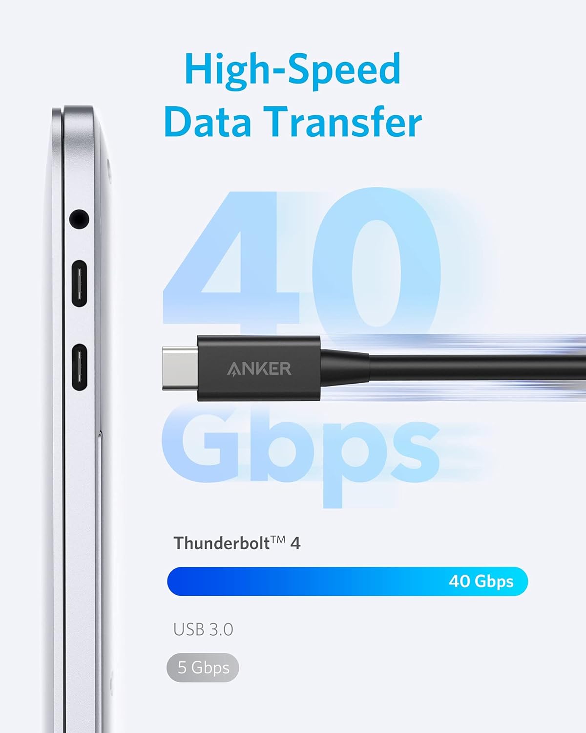 Anker Thunderbolt 4 Kabel 70cm lang, 8K Display/40 Gbps Datentransfer/100W USB-C Ladekabel, kompatib