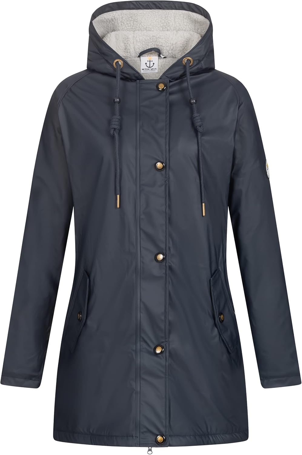 PRODUKTBESCHREIBUNGEN Sehr aktueller und voll im Trend liegender Damen Regenmantel mit sehr warmen und kuscheligen Innenfleece Material und super softem PU Aussenstoff verleihen dem Mantel einen angenehmen Tragekomfort,verdeckter Frontreissverschluss mit edlen Knöpfen besetzt,breite Kordelschnur n der Kapuze,2 seiliche Aussentaschen und zwei Innentaschen mit Klettverschluss Mehr