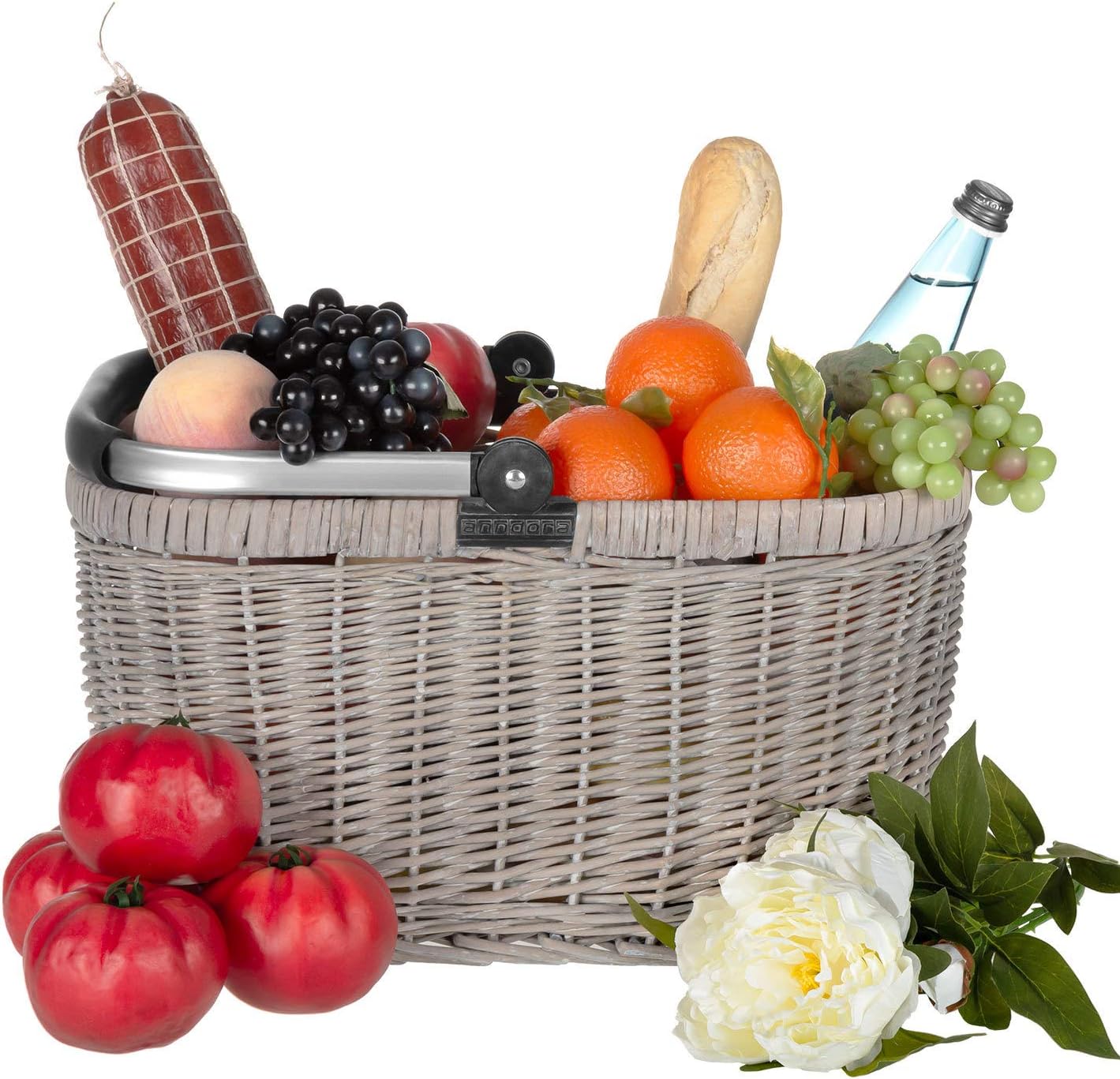 anndora Einkaufskorb Weidenkorb mit Alurahmen 22 L beige - klappbarer Alubügel Korbweide Hell