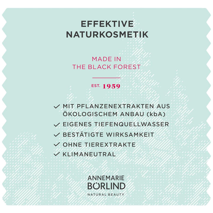- MADE IN THE BLACK FOREST: ANNEMARIE BÖRLIND steht für nachweislich wirksame Naturkosmetik, die wir durch innovatives und nachhaltiges Handeln aus einzigartigen Rohstoffen entwickeln.