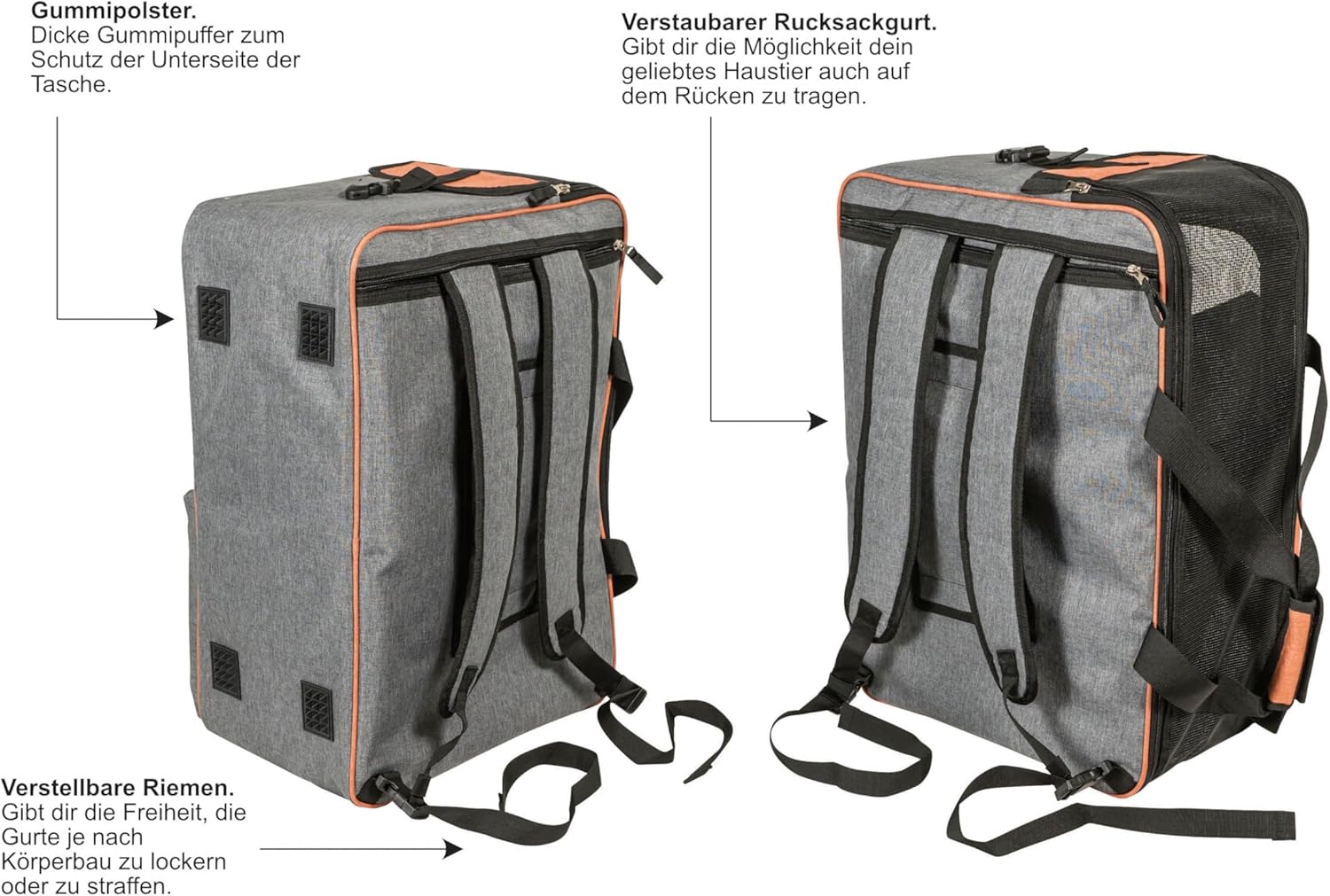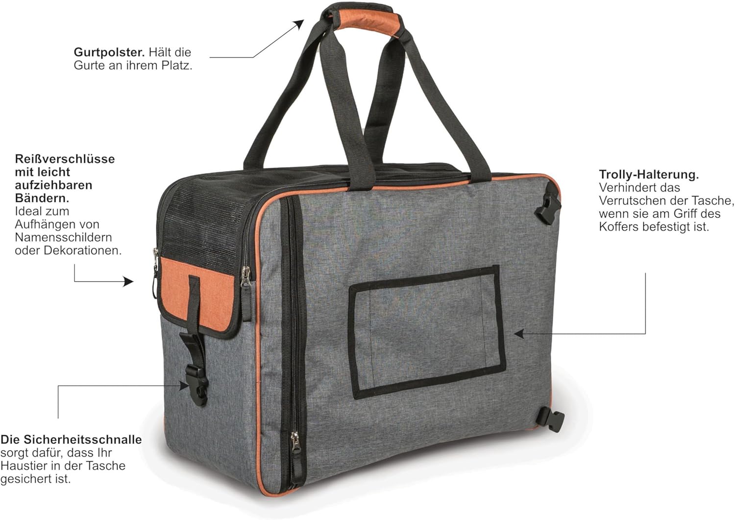 - Praktische Features: Grosse Aussentasche für wichtige Utensilien, ein kleiner Reissverschluss zur einfachen Kontaktaufnahme mit Ihrem Tier.