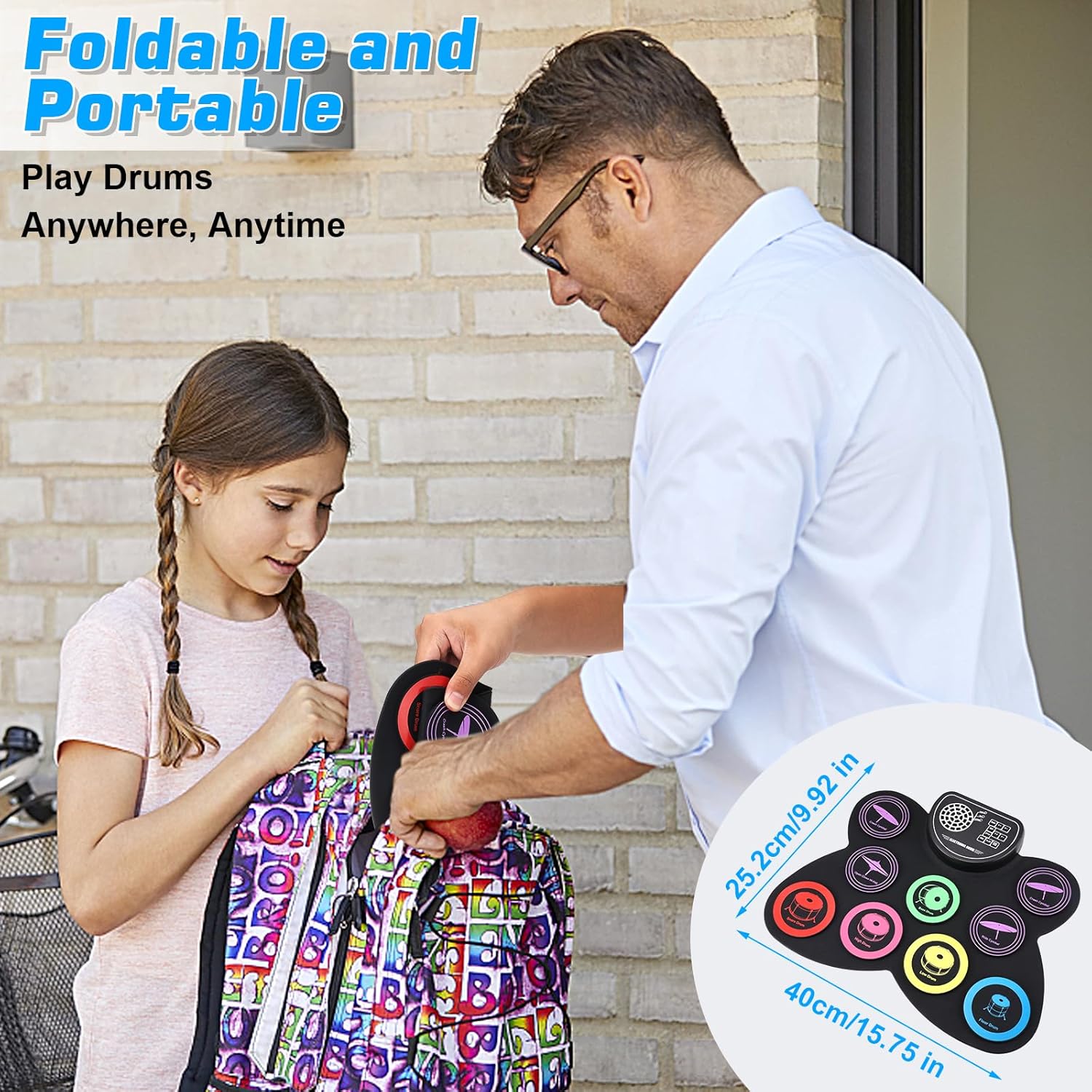 - 【 Perfektes Geschenk für Kinder/Anfänger 】 Das 9-Trommel elektronische Silikon Regenbogenpad ist massgeschneidert, um musikalische Leidenschaft bei Kindern und Neulingen zu entfachen. Ein ideales Geschenk für Weihnachten, Geburtstage und Feiertage.