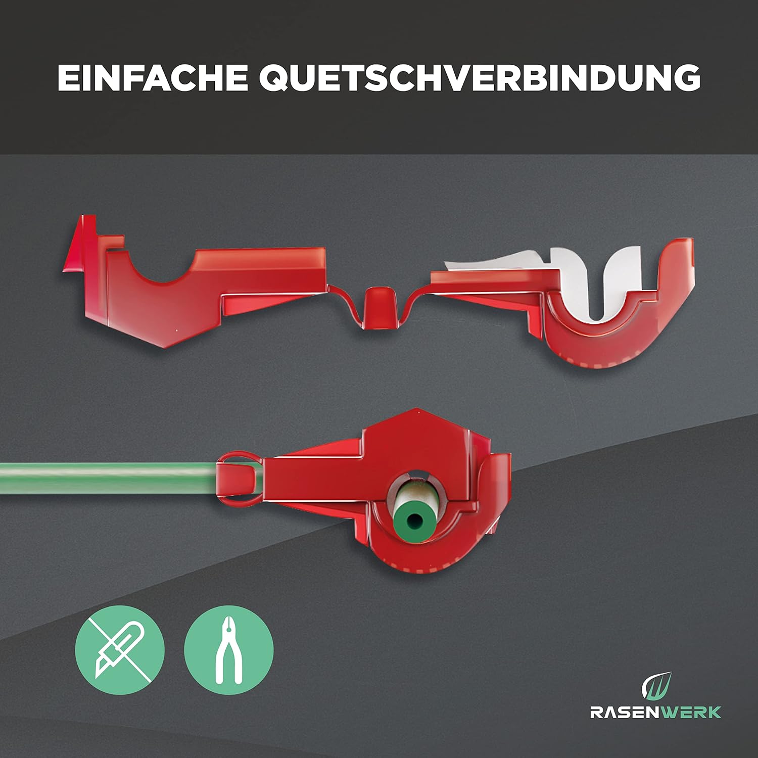 - GARANTIERT KOMPATIBEL - Die Begrenzungskabel Anschlussklemme von RASENWERK können Sie bedenkenlos mit allen Modellen der gängigen Markenhersteller wie Gardena, Husqvarna und Yard Force verwenden.