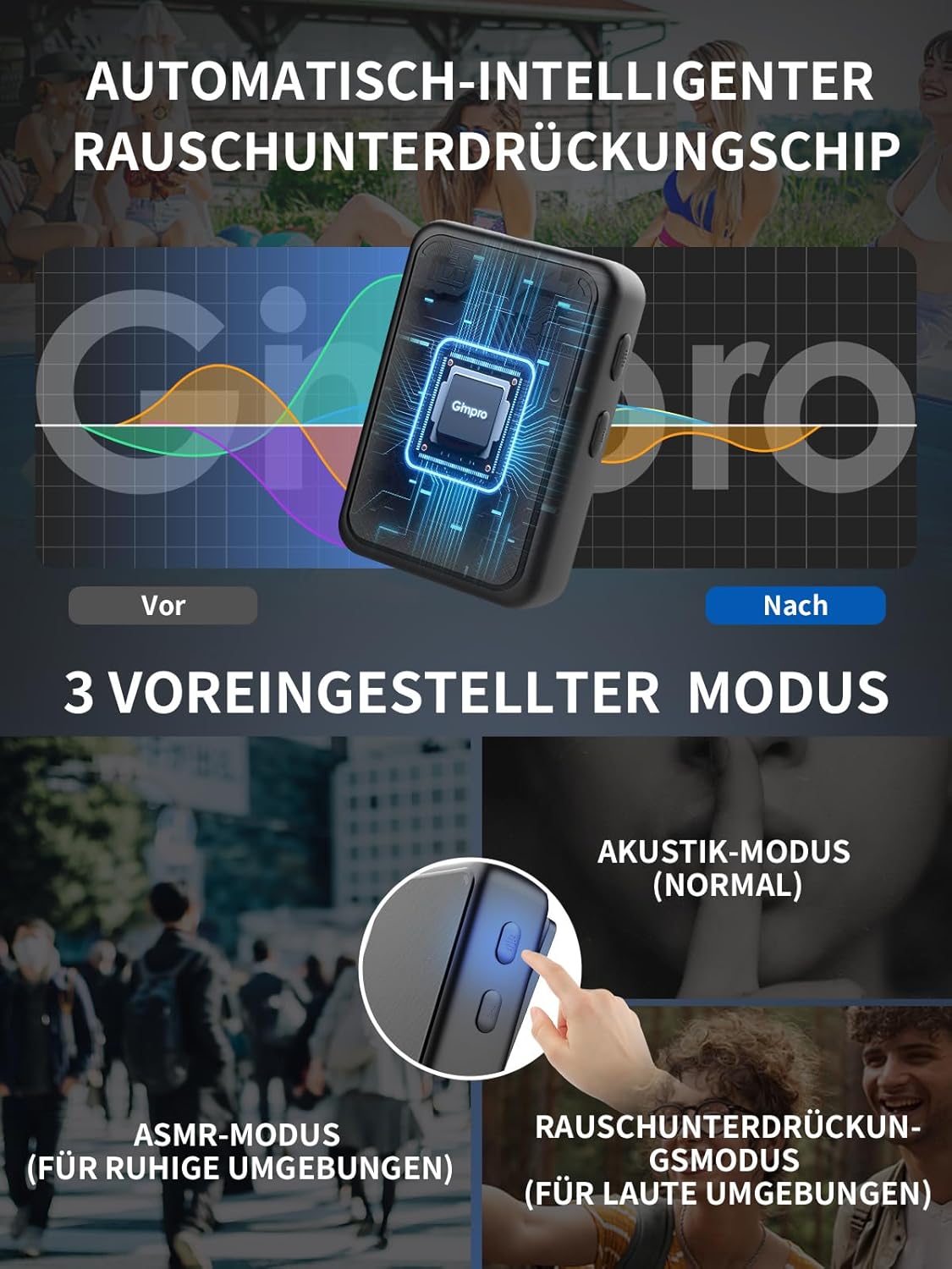 - ✨【Überlegene Rauschunterdrückung und 3 PRESET-Modus】Gimpro MB1(C) nimmt 3 verschiedene Rauschunterdrückungsmodi an:Asmr Mode(For queit enviroment),Acoustic Mode(Normal),Noise Refusion Mode(For noisy environment).Anders als im klassischen