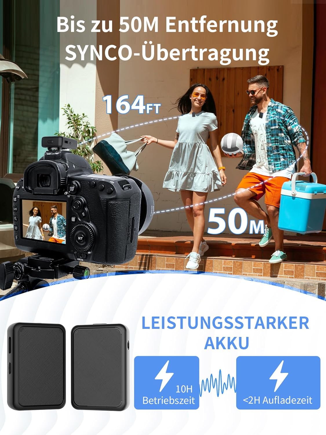 - ✨【Einfache Verbindung, Plug & Play】Schliessen Sie den Empfänger über das 3,5-mm-Klinkenkabel an die Kamera an, schalten Sie den Senderschalter ein, die Anzeige leuchtet auf und die Verbindung ist hergestellt. Keine Notwendigkeit für Bluetooth,