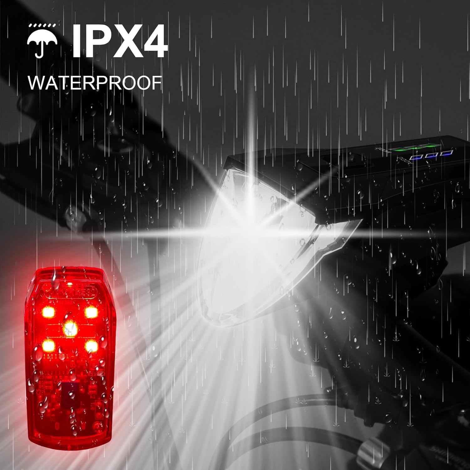 - FUNKTION: Rücklicht mit 5 sehr hellen LEDs, um die Rücklicht-Warnfunktion zu erfüllen und die Sicherheit beim Fahren zu verbessern. Frontlichter mit 3 Lichtmodi: 25%/50%/100% einstellbare Helligkeit Modus, lange sichtbare Entfernung.