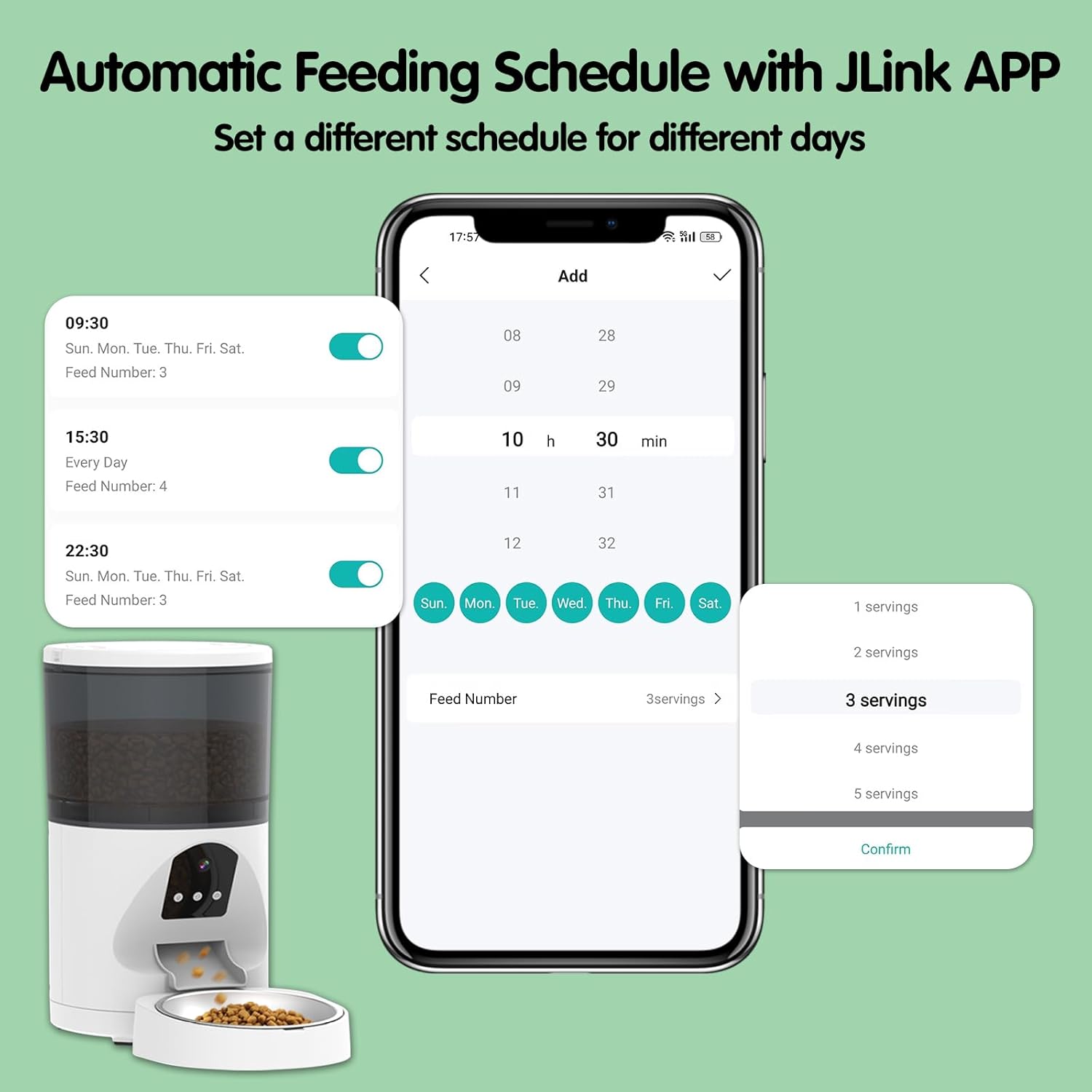 - 【Futterautomat für Haustiere】Bitte laden Sie zuerst die JLink APP herunter, alle Funktionen werden in der APP eingestellt.