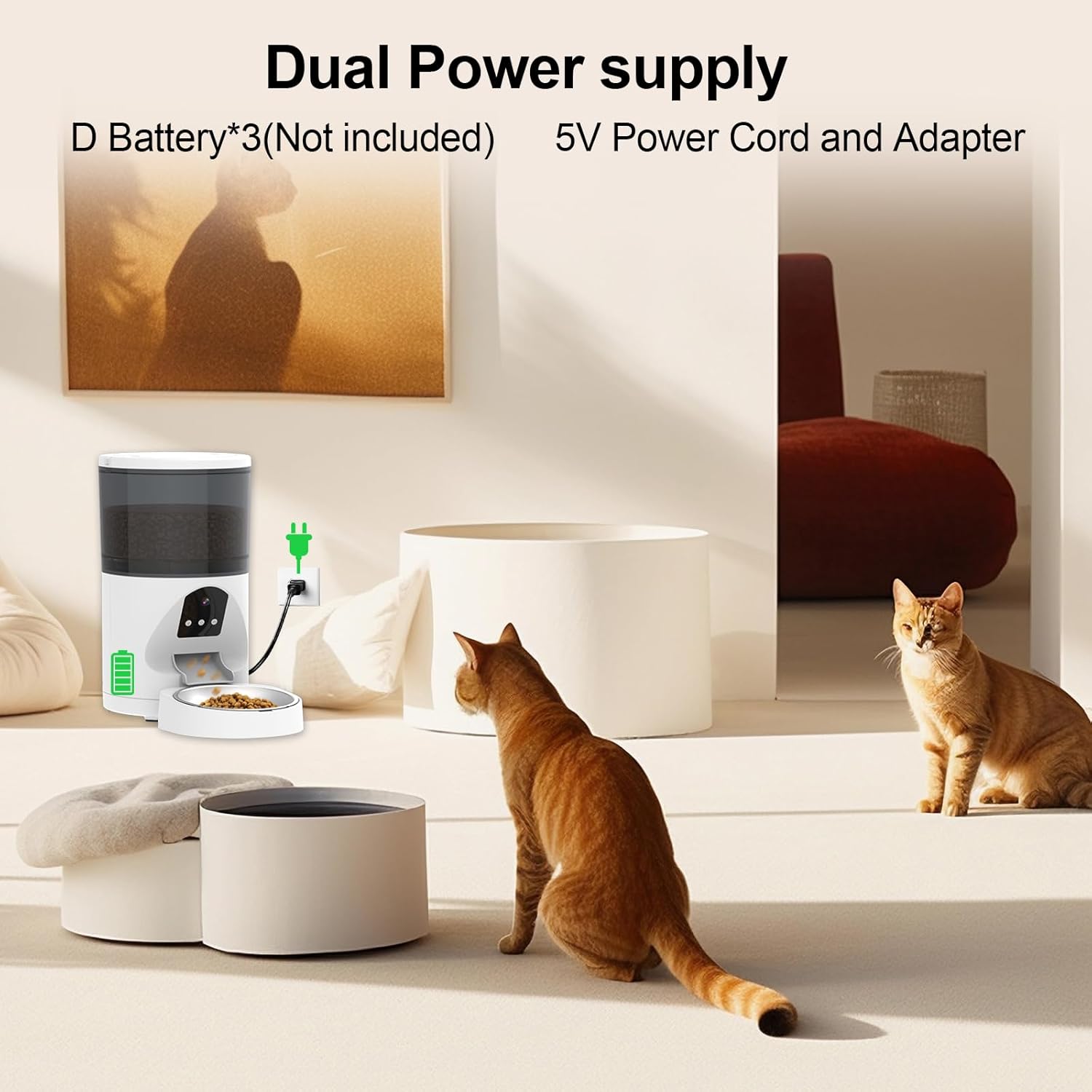 - 【Ihr Haustier bekommt immer Futter】Der Hundefutter-Automat wird von einem 5V-Adapter mit Strom versorgt und verwendet 3pcs D(LR20) Batterien (nicht im Lieferumfang enthalten) als Ersatzstromquelle. Es ist nur für trockene Partikel mit einem