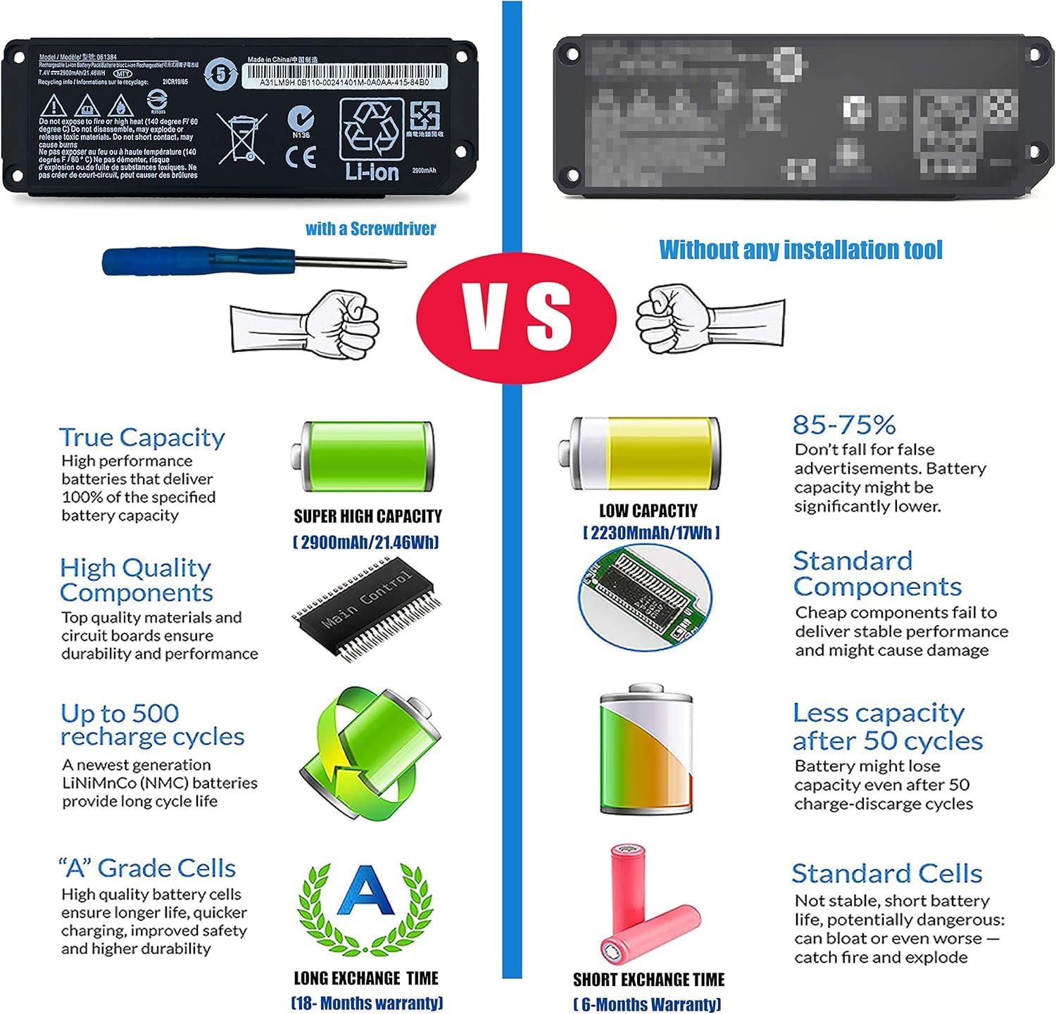 - 【Akku Spezifikationen】Akku-Typ: Wiederaufladbares Lithium-Polymer; Kapazität: 2900mAh/21.46Wh ; Spannung: 7.4 V; Batterielebensdauer:Erwartete Lebensdauer von mehr als 1000 Ladezyklen