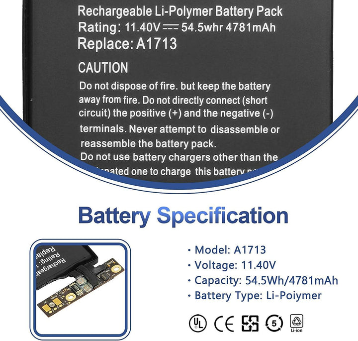 - 【Kompatible Teilenummer】A1713;A1708;A1708 (EMC 3164);A1708 (EMC 2978);020-00946;MacBookPro13,1; MacBookPro14,1