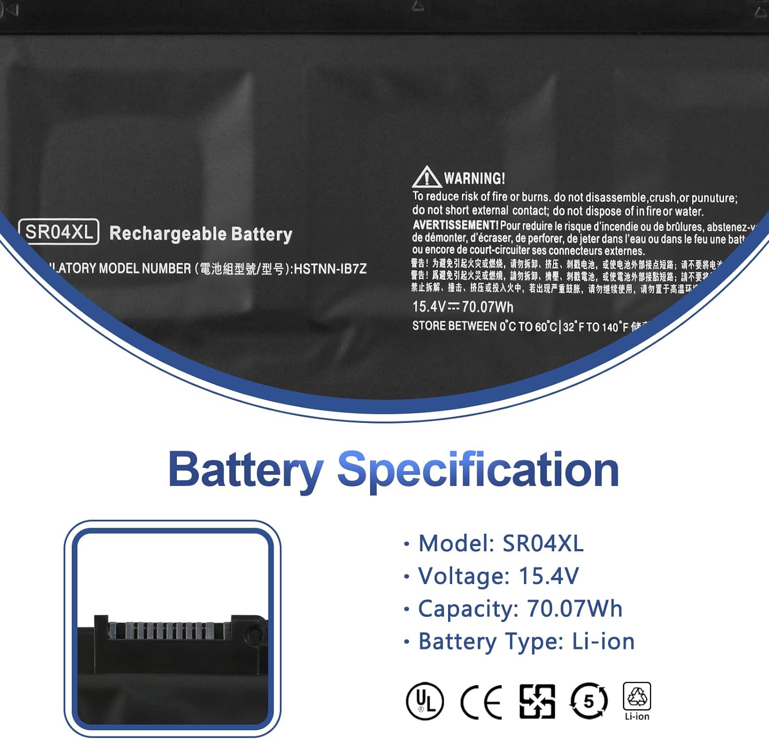 - 【Kompatible Teilenummer】:HP SR04XL 917678-1B1 917724-855 TPN-Q193 HSTNN-IB7Z HSTNN-DB7W 917678-2B1TPN-C133 TPN-C134 Laptop Battery.
