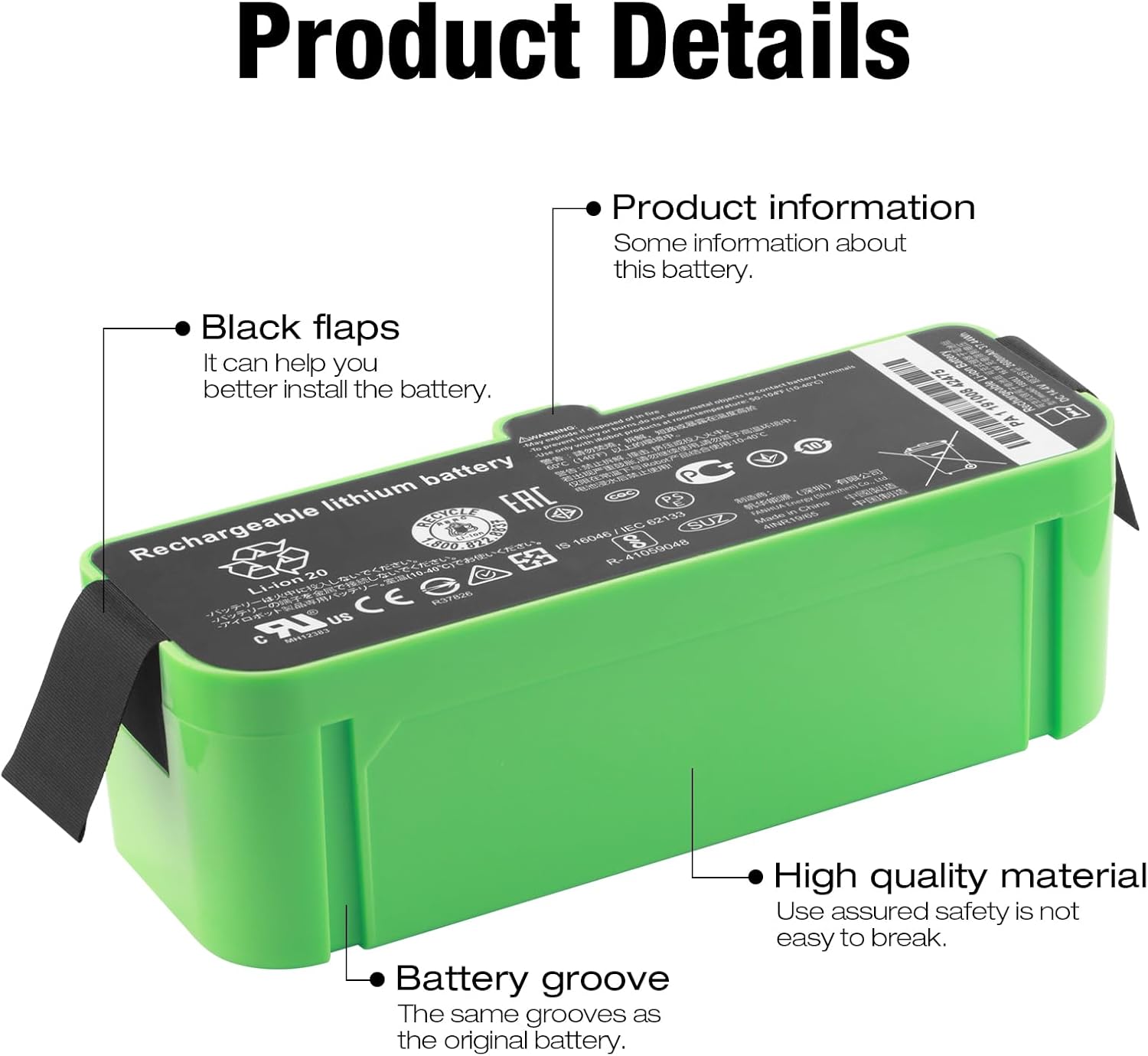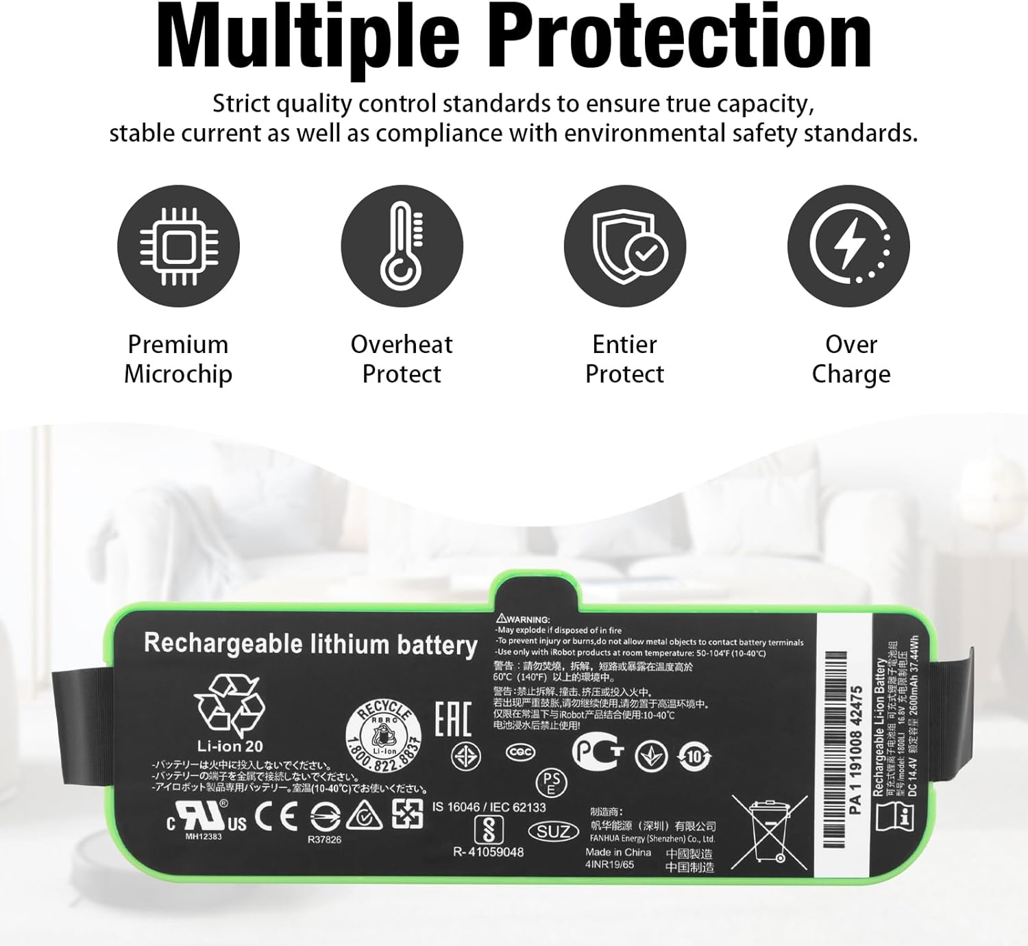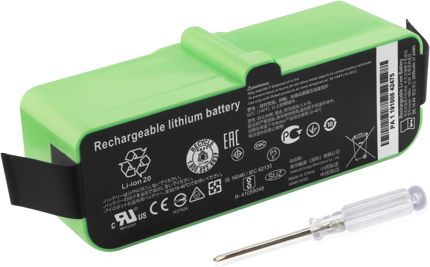 - 【Akku Spezifikationen】Akku-Typ: Wiederaufladbares Lithium-Polymer; Kapazität: 37.44Wh/2600mAh,Spannung: 14.4V; Batterielebensdauer:Erwartete Lebensdauer von mehr als 1000 Ladezyklen