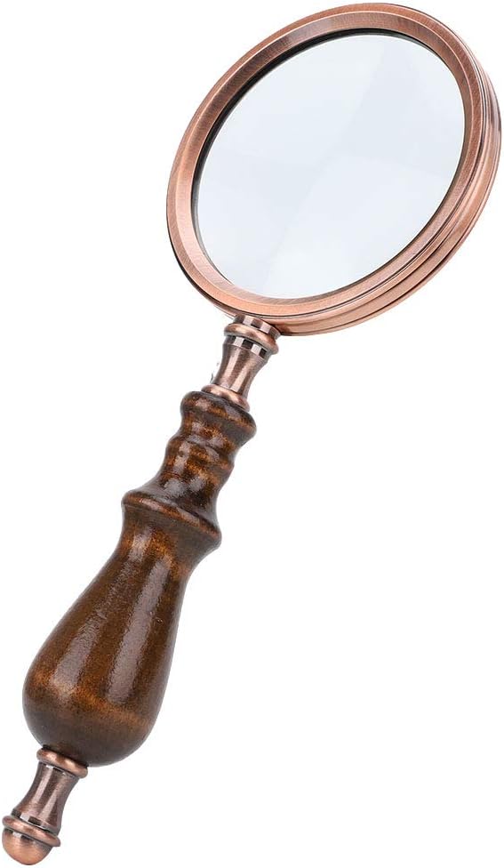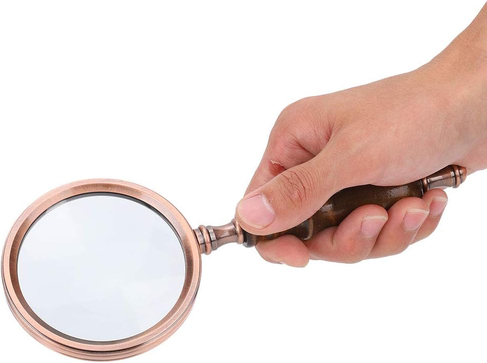 Oumefar Antik Handlupe 10X Handheld lupe Abnehmbare Holzgriff Lupen Leseinspektion Lupe Zinklegierun
