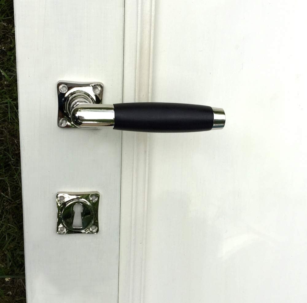 - Abmessungen ca.: Türklinkenlänge 105 mm, Breite 50 mm, Dorn 8 x 8 x 10, Rosettenlänge 38 mm, Rosettenbreite 38 mm