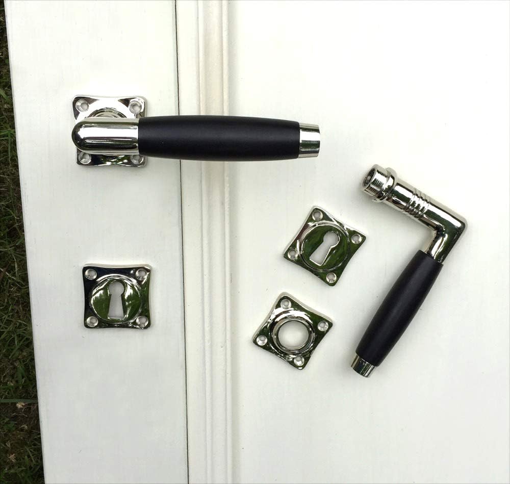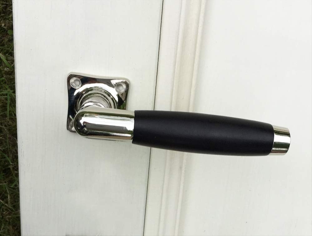 - Türklinkengarnitur im Retro Stil - Nickel-Design Beschlag mit Ebenholzgriffen.