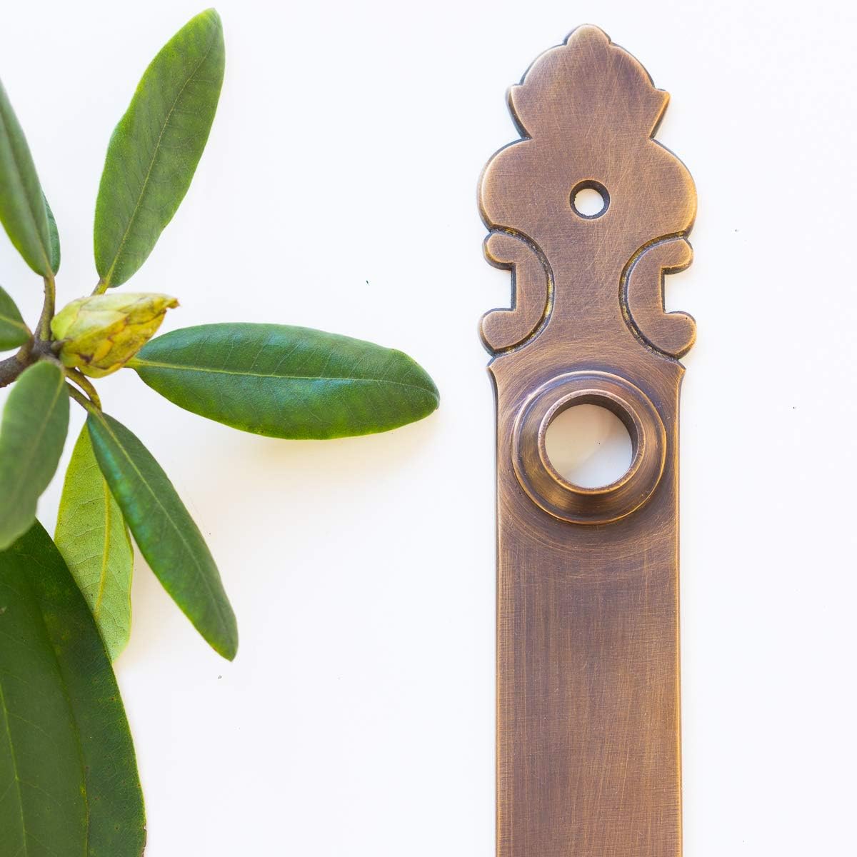 - Schönes Langschild ohne Schlüsselloch, aus brüniertem Messing.