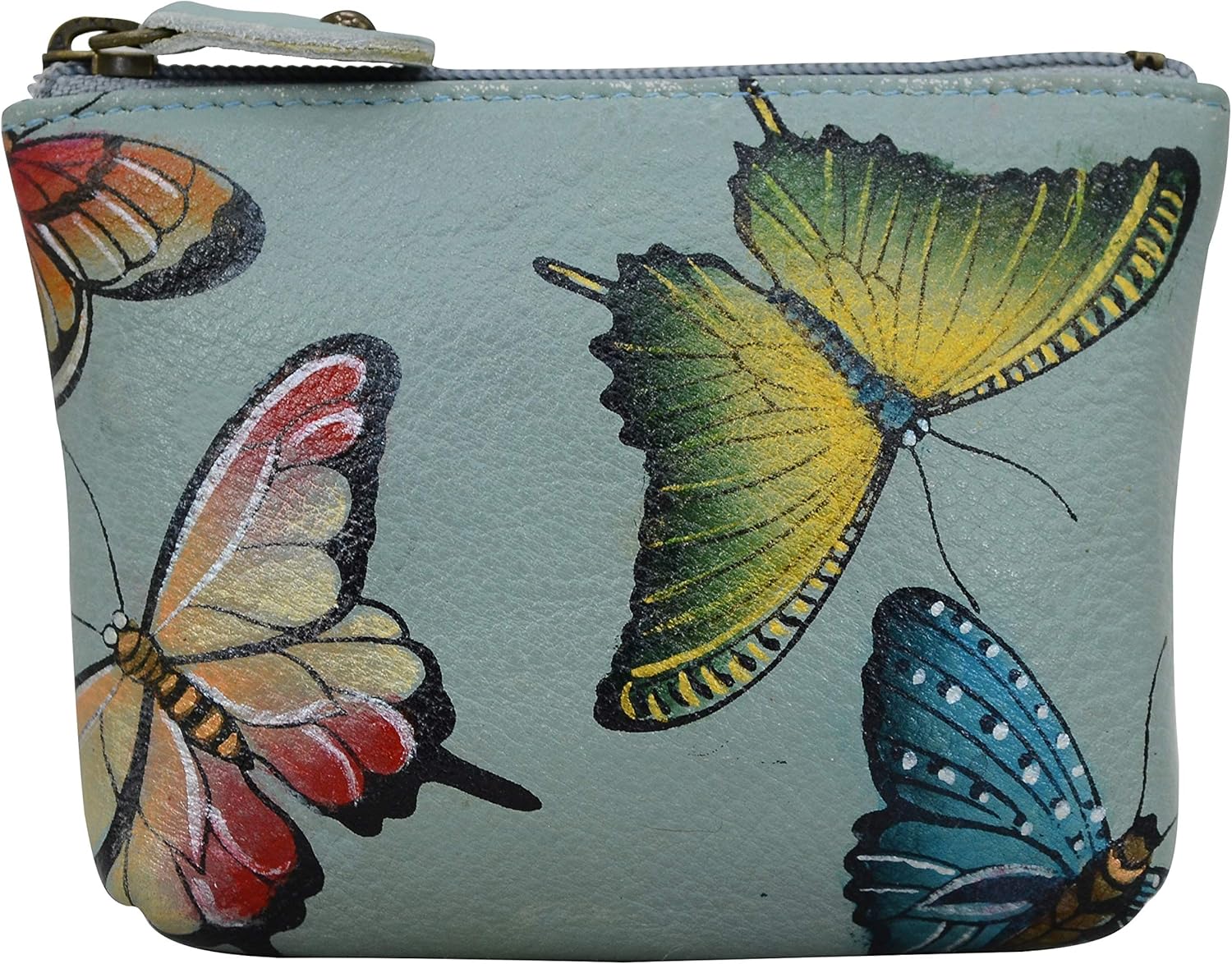 - BUTTERFLY HEAVEN - Jeder Münzbeutel Beutel ist handbemalt, um ein Kunstwerk zu schaffen, das von der Natur und Vintage-Themen inspiriert ist. Auf einem blauen Hintergrund sind die schönsten Schmetterlinge mit einer Vielzahl von Mustern abgebildet