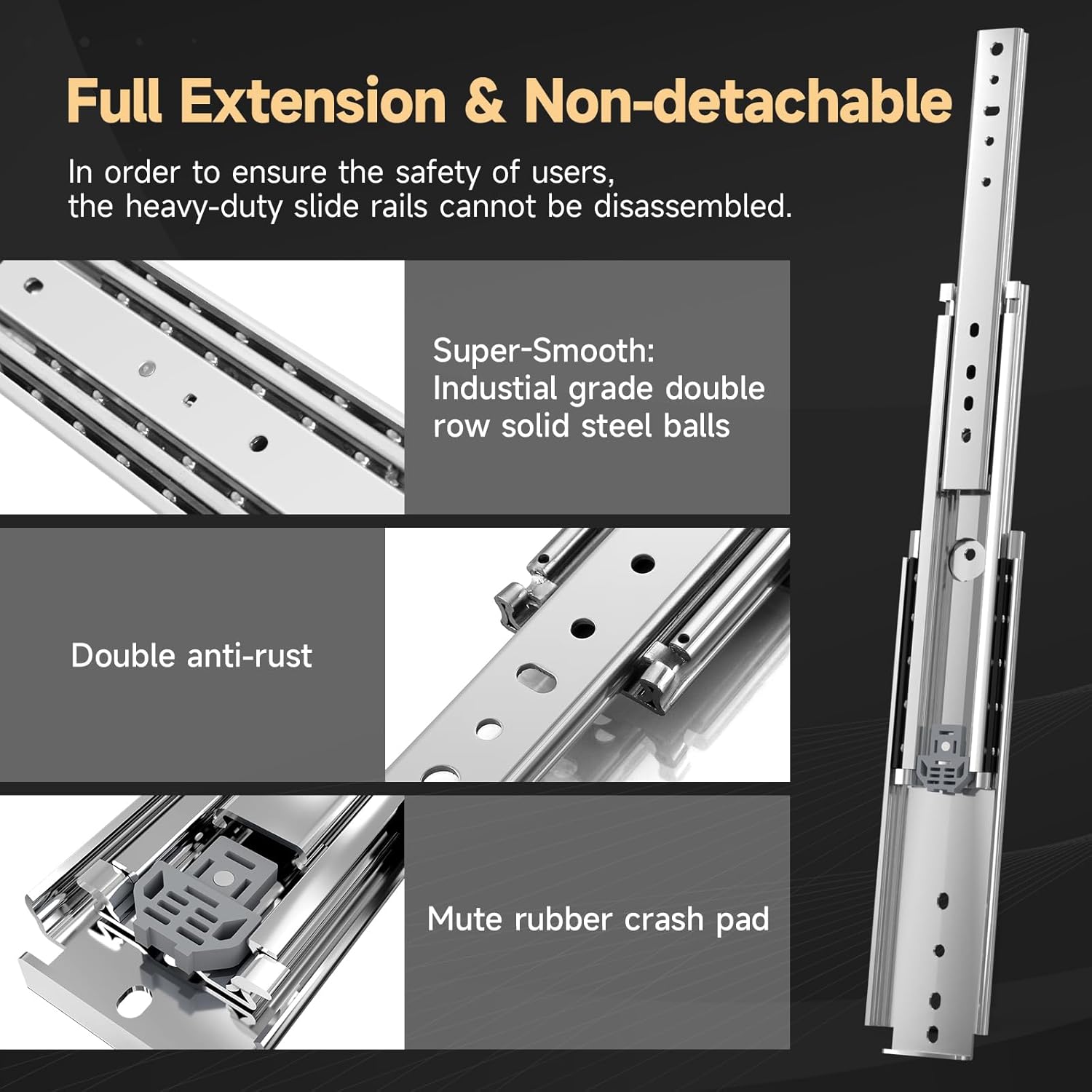 - 🏆【Hohe Stabilität】 1 Paar (2 Stück) hochbelastbare Schubladenführungen. Führungen und Kugellaufbahnen sind einzelne, nicht abnehmbare Einheiten. Leichtgängigkeit und hohe Seitenstabilität dank Präzisionsschienen. Einsetzbar für