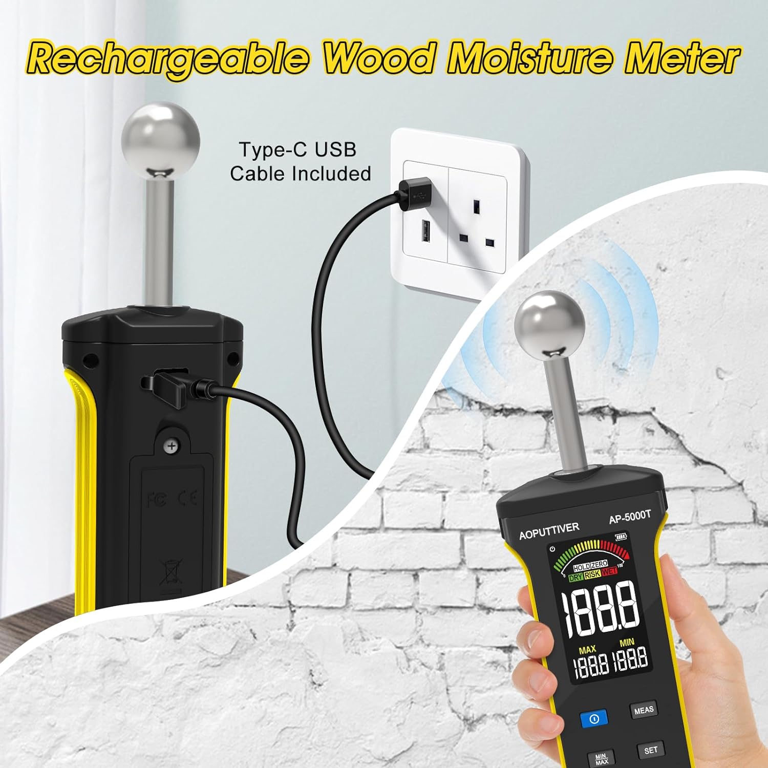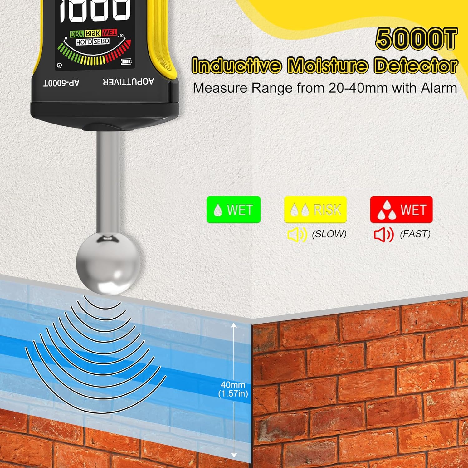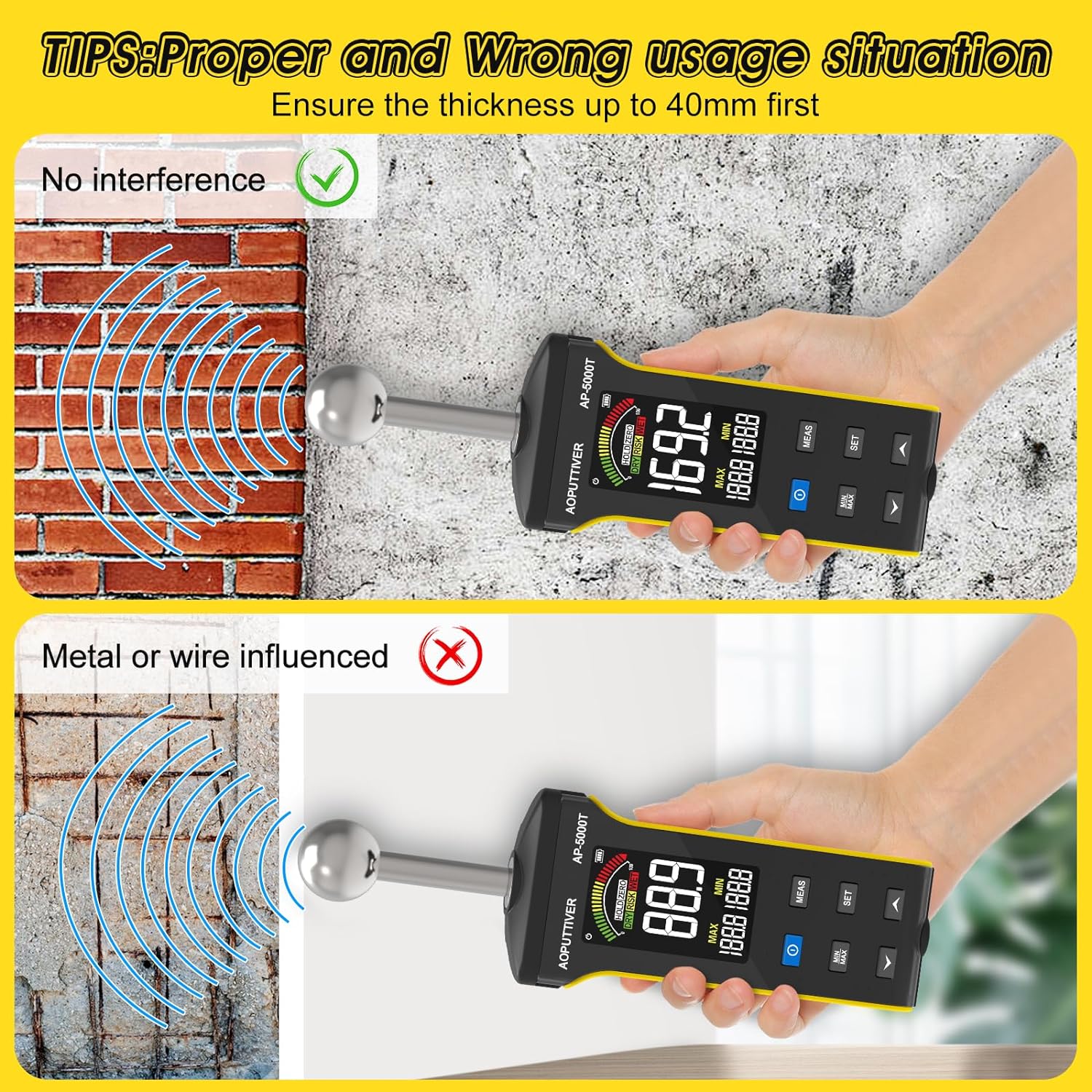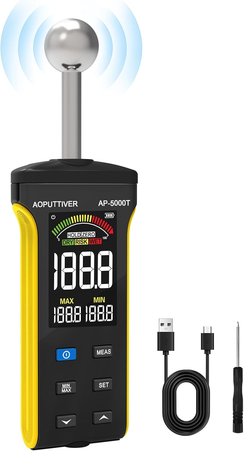 - ✅【Zerstörungsfreie Feuchtigkeitsmessung】Sphärischer induktiver feuchtigkeitsmessgerät, ohne die Notwendigkeit, Sonden oder Elektroden im Material zu verwenden, um eine effiziente und genaue Positionierung, Erkennung von Feuchtigkeitsbedingungen