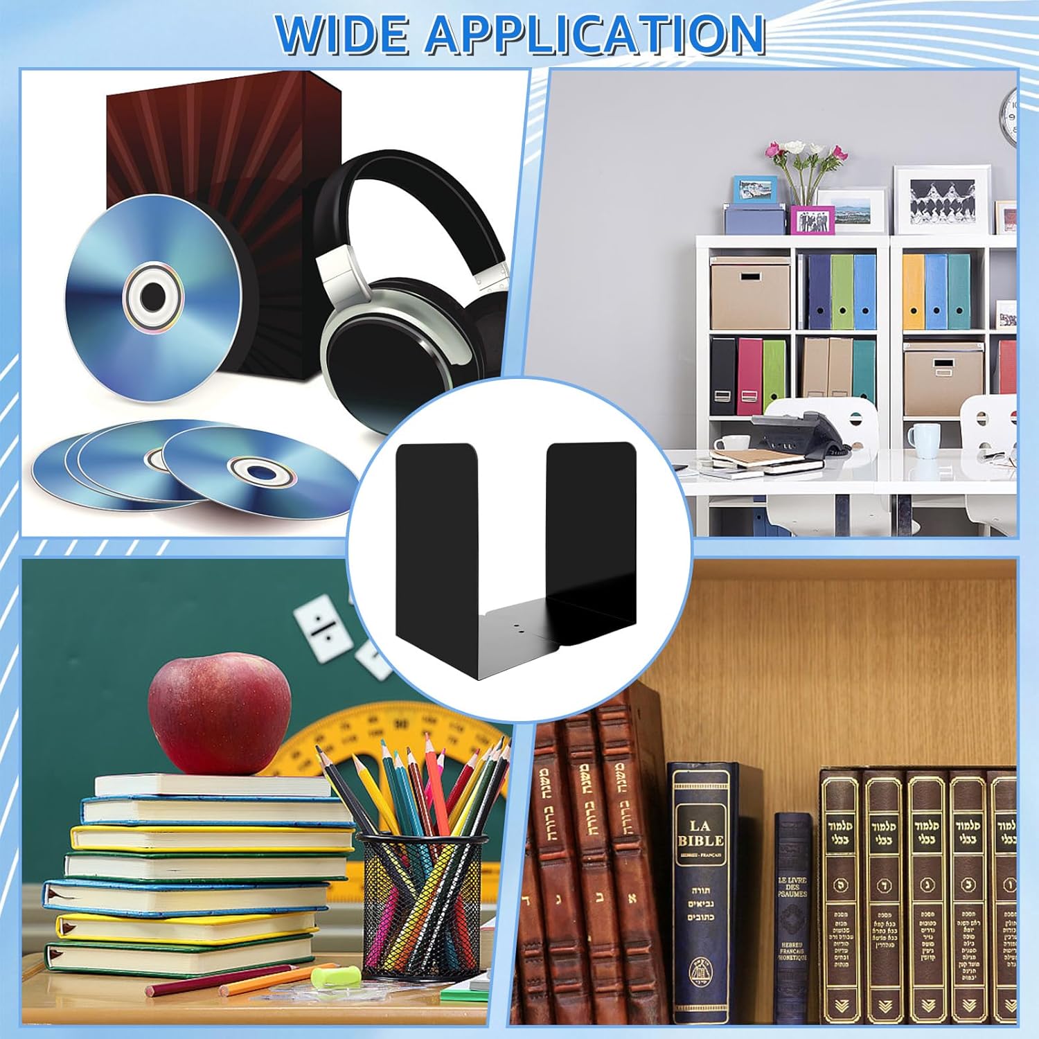 - 【BREITE ANWENDUNG】Die Buchstütze schwarz sind ideal für Bibliotheken, Büros, Buchläden, Schulen und Häuser. Es ist perfekt für die Organisation von Büchern, DVDs, Schallplatten, Zeitschriften und anderen Gegenständen, und grossartig als