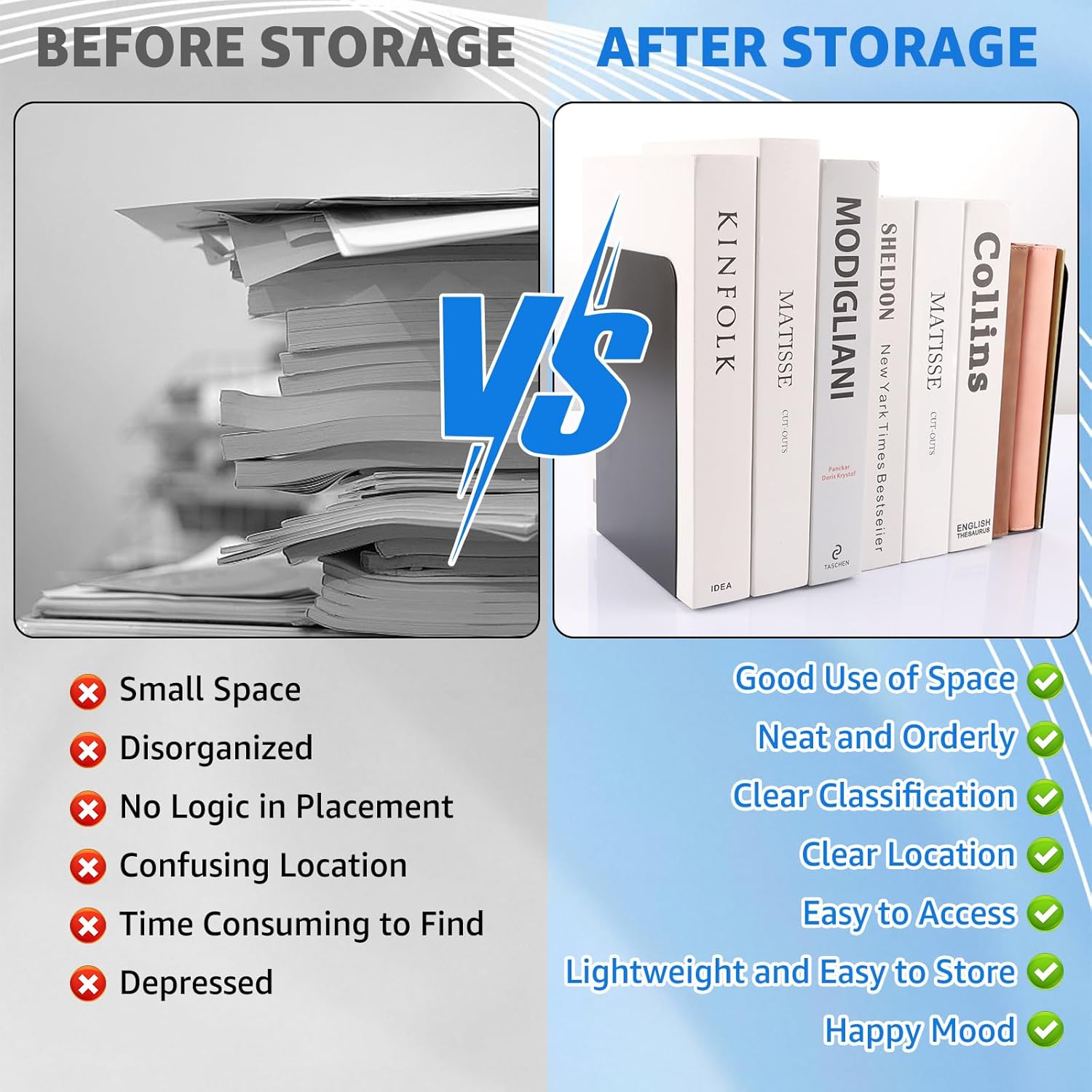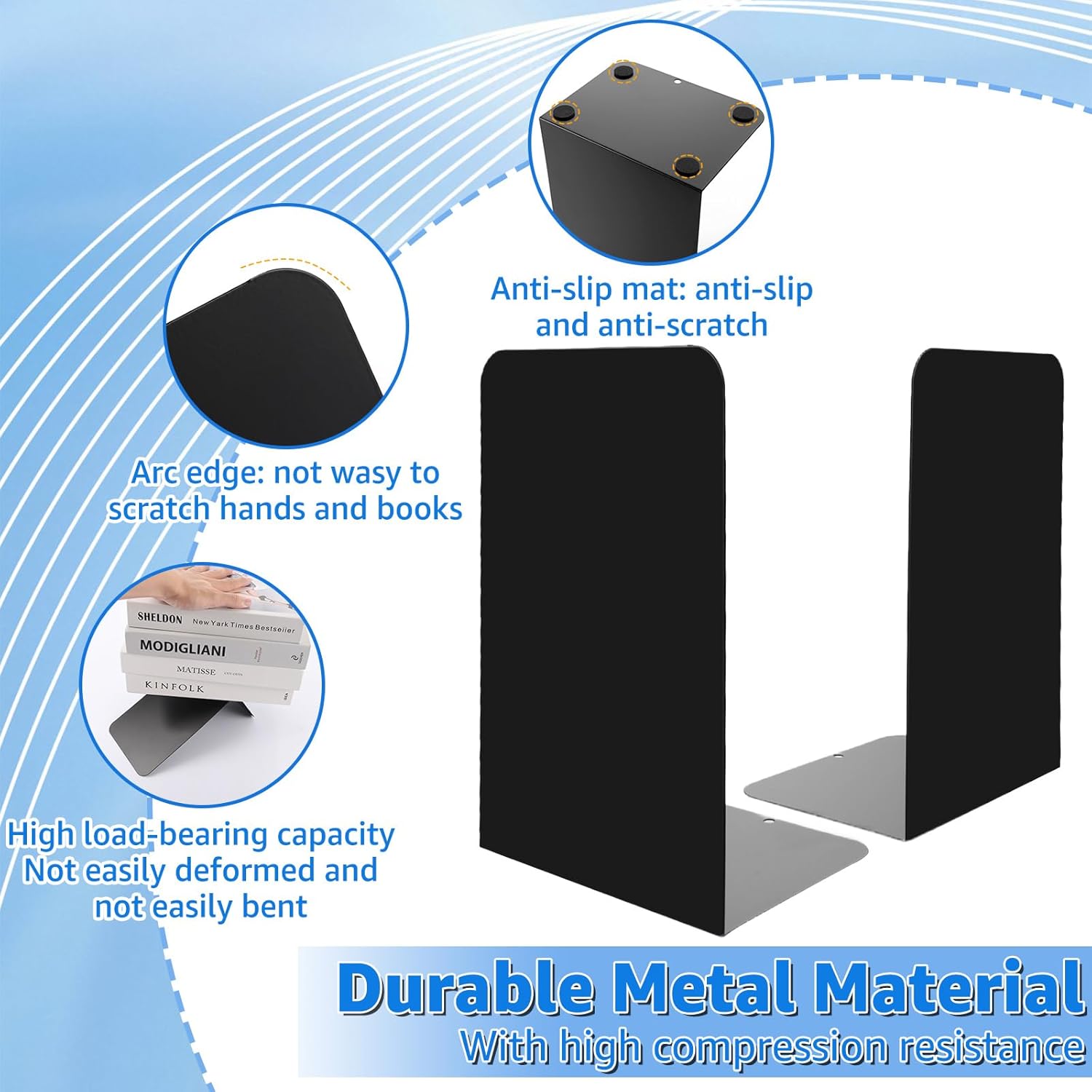 - 【HOCHWERTIGES MATERIAL】Die schwarzen Buchstützen sind aus Metall-Eisen-Material mit elektrostatischer Malerei Oberfläche, stark und langlebig, nicht leicht zu verformen. Die Buchstützen halten auch schwere Bücher ordentlich, aufrecht und nicht
