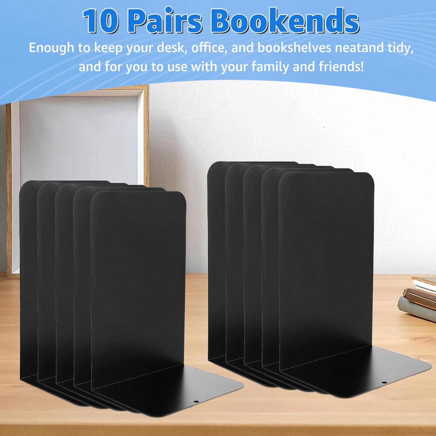 - 【PRODUKT DETAILS】 Die Grösse der Buchstützen Metall ist 20.4x10x13.5CM, Sie erhalten 10 Paare schwarze Buchstützen, viel Menge, um Ihre täglichen Bedürfnisse zu erfüllen, die einfachen Buchstützen können Ihre Werkbank, Bücherregal und Zimmer