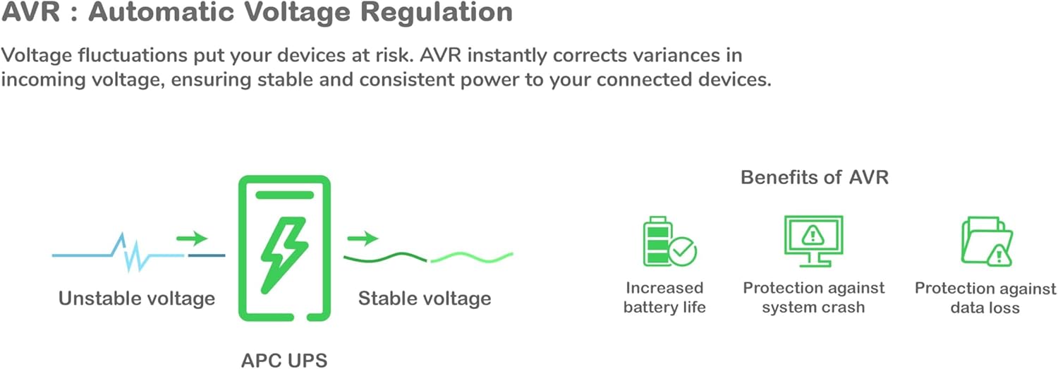 - Die automatische Spannungsregulierung (avr) schützt angeschlossene Geräte, indem sie die eingehenden Spannungspegel stabilisiert