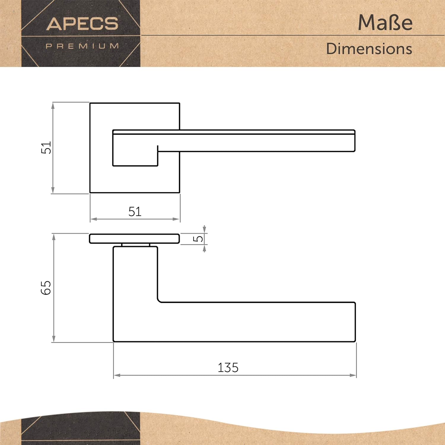 - 🔑 Das Türgarnitur ist für jede Tür mit einer Stärke von 35-50 mm geeignet. Der Vierkantstift hat eine Grösse von 8*8*100mm. Ebenfalls enthalten ist ein 9x9mm Adapter.