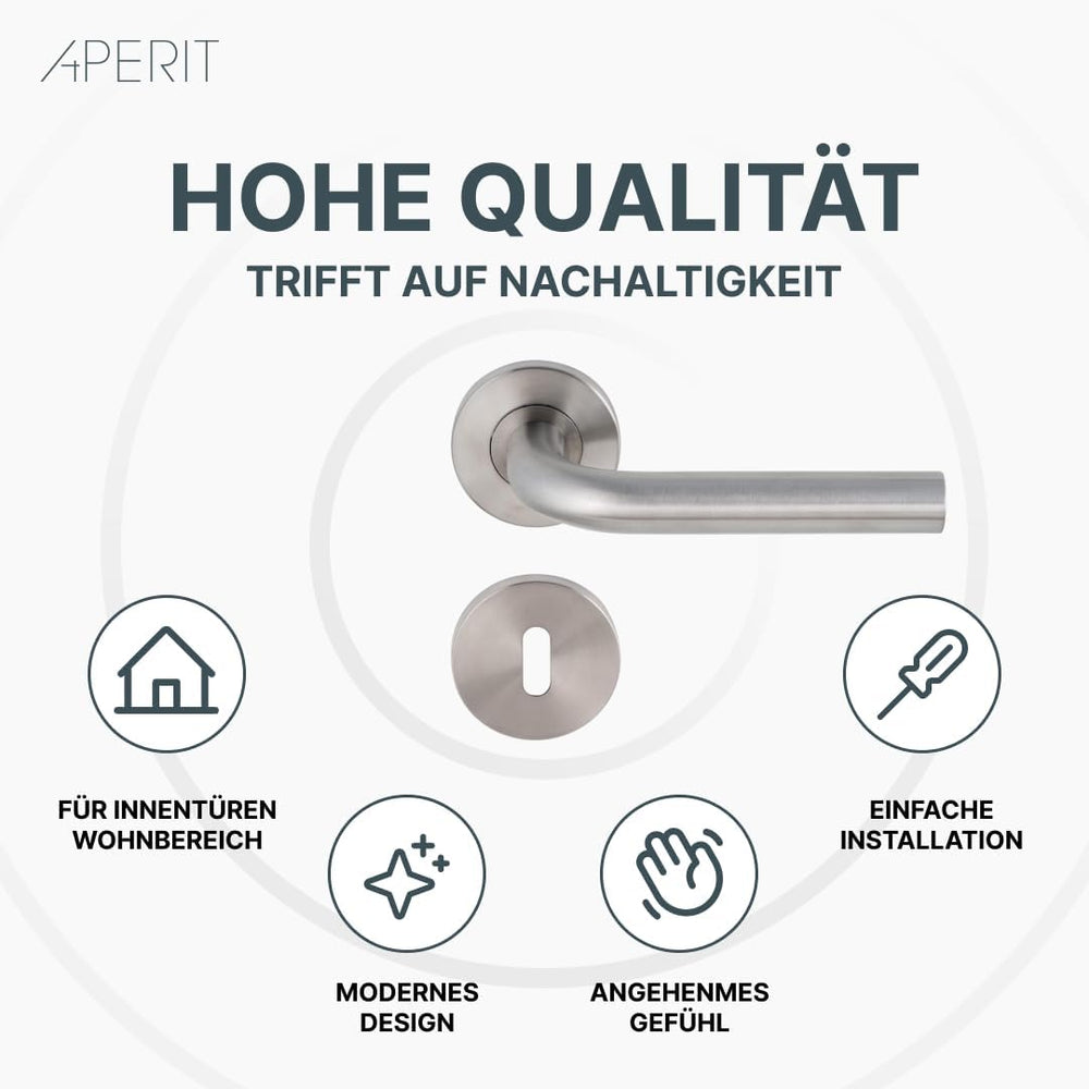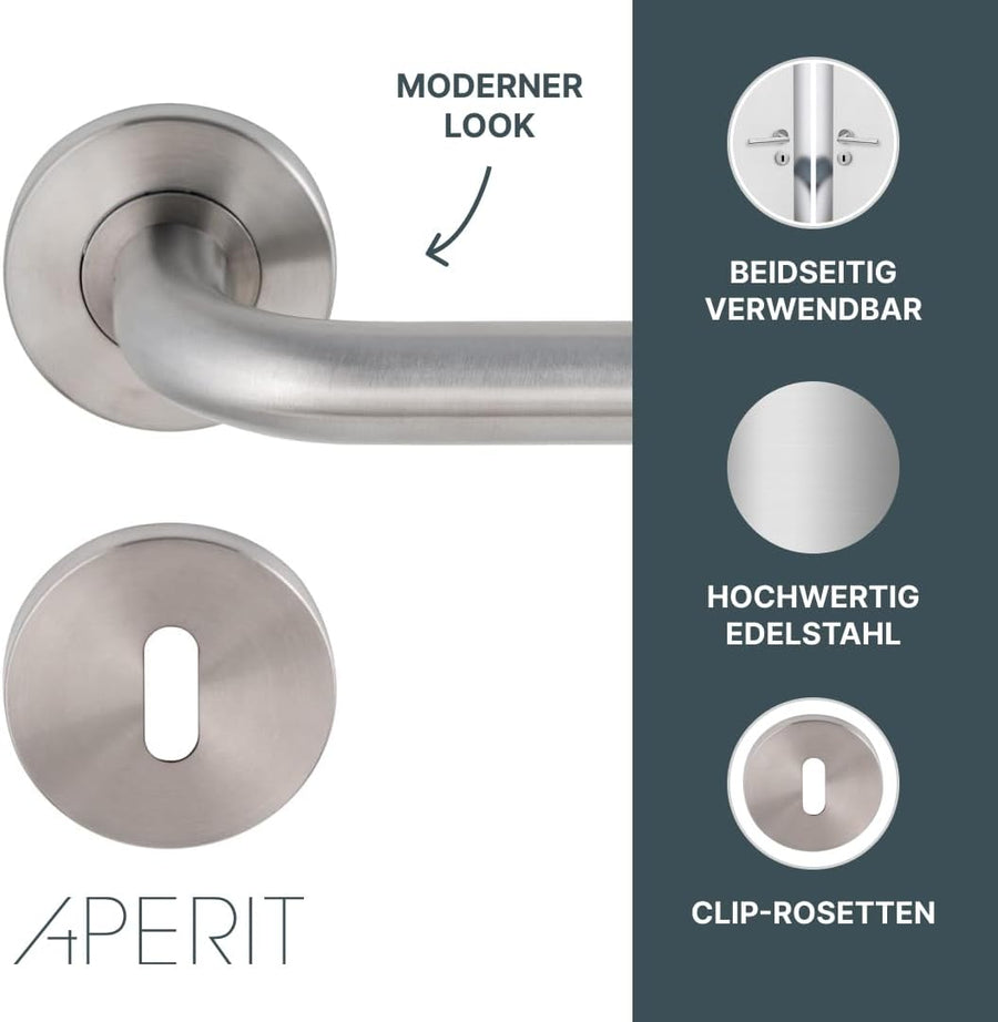 Aperit Türgriff: Edelstahl Türklinke mit Bunbart Rosetten - Drückergarnitur für Innentüren - L-Model