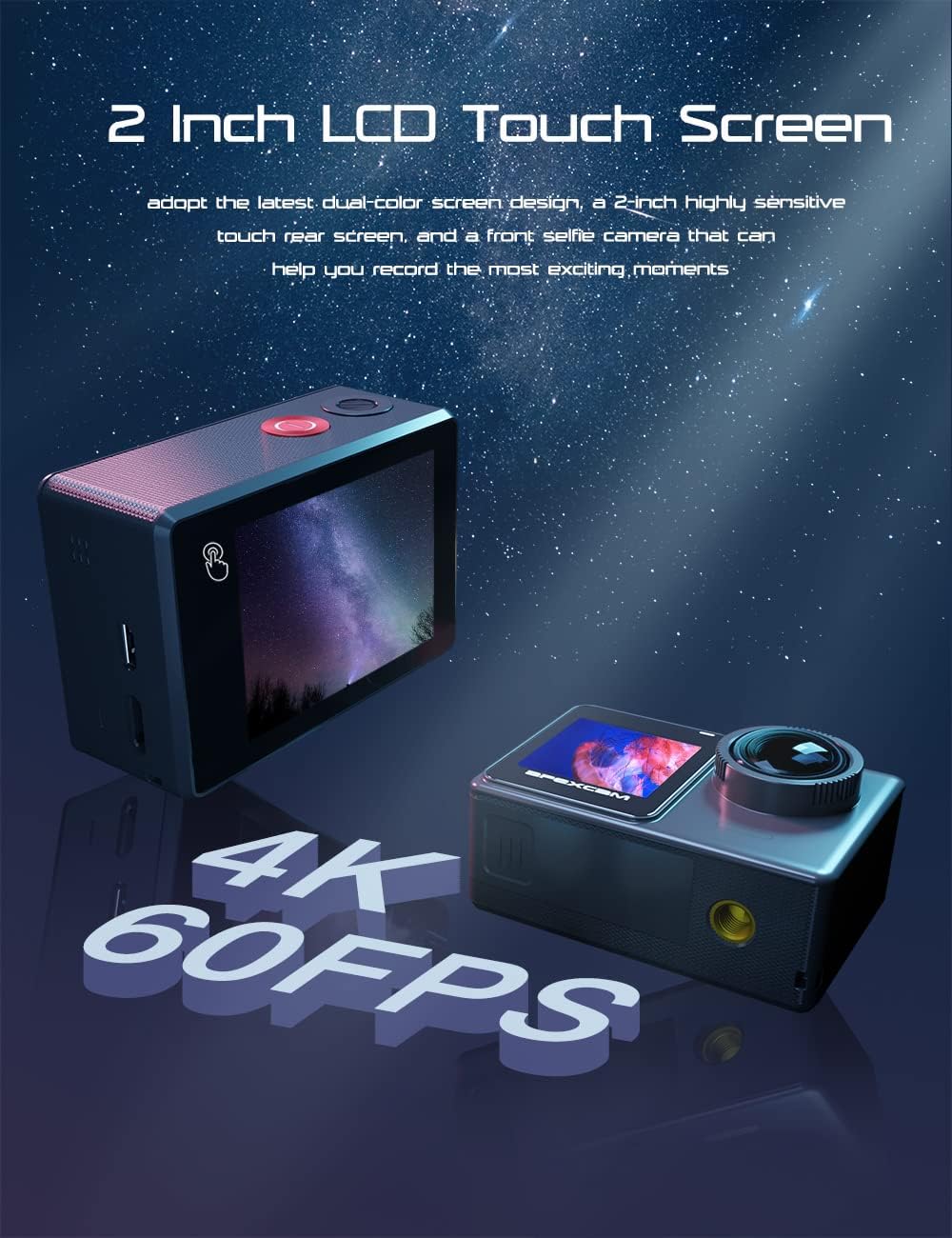 - 【Dual Displays & Berührungsbildschirm】 Diese Aktionskamera verfügt über zwei Bildschirme, der vordere 1,3 Zoll LCD-Bildschirm ermöglicht es Ihnen, sich selbst ohne die Hilfe anderer zu erfassen, während der hintere Bildschirm, der