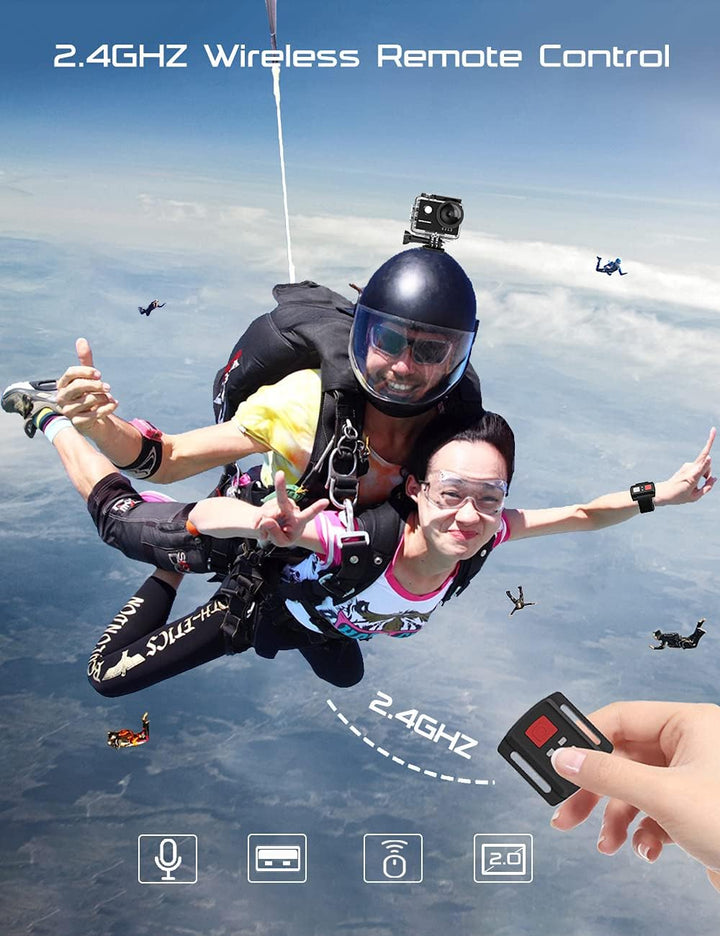 - 【WLAN und 2.4G Fernbedienung】: Mit 2.4G drahtlose Fernbedienung können Sie X60Pro als Helmkamera während Skifahren, Radfahren u.s.w. benutzen. Mit der WIFI App können Sie X60Pro mit Ihrem Smartphone oder Tablet fernsteuern.