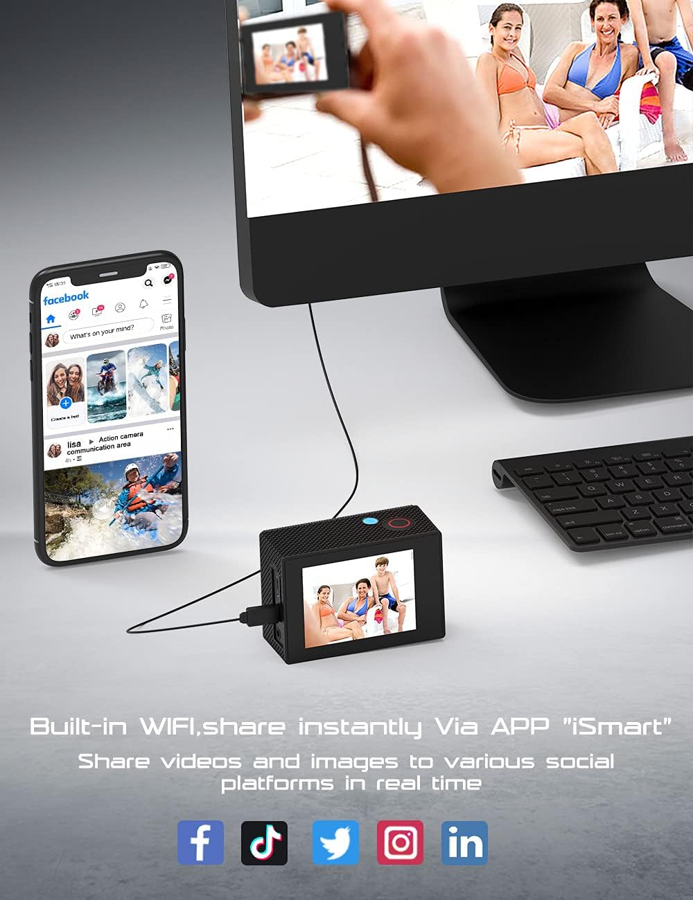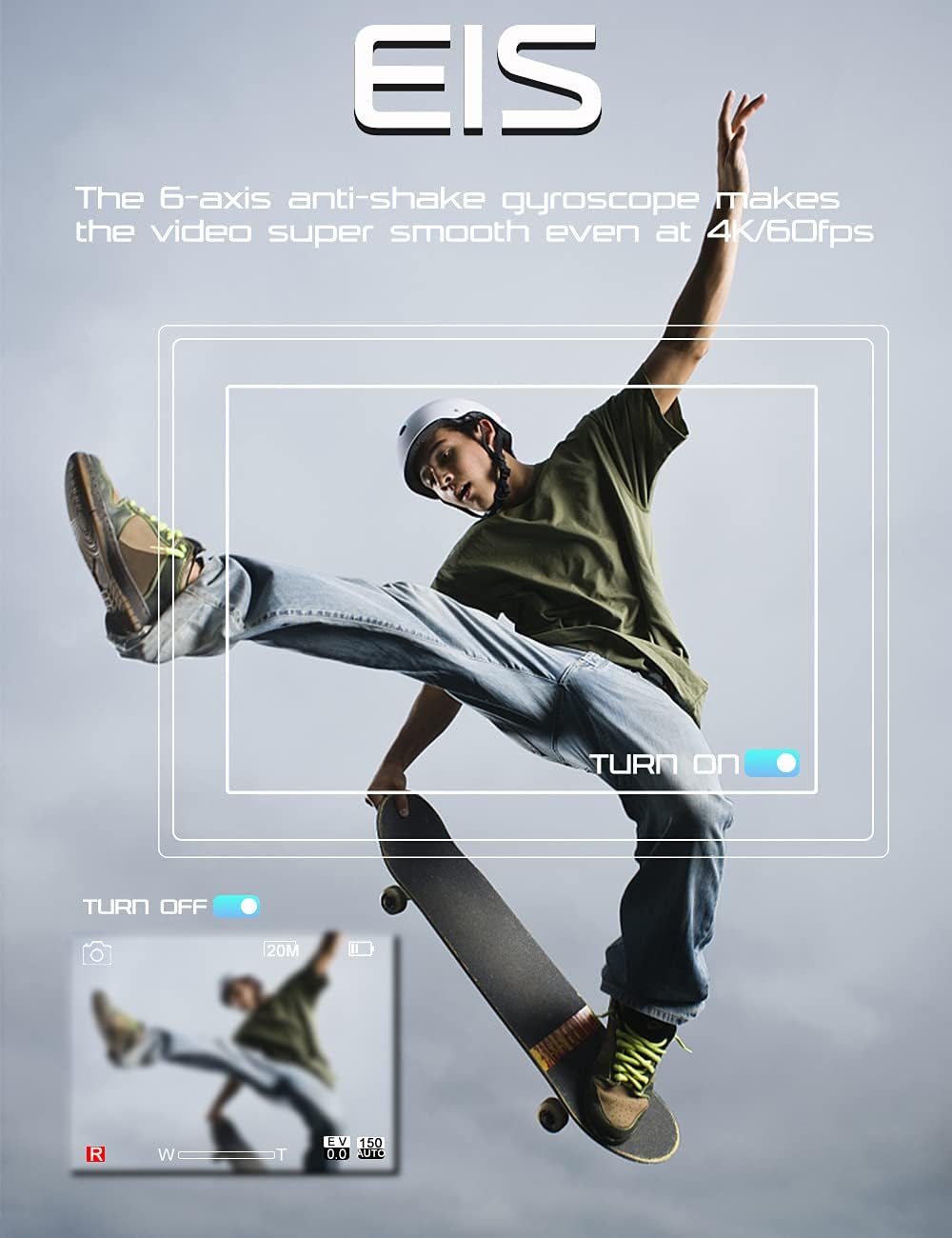 - 【6-Achsen-EIS und 40M Wasserdicht & Staubdicht & Absturzsicher】: Mit eingebauten elektronischen Bildstabilisierung (EIS) mit 6-Achsen-Gyroskop wird die Stabilität des Videos verbessert. Ausgestattet mit einer verbesserten IP68 wasserdichten Box,