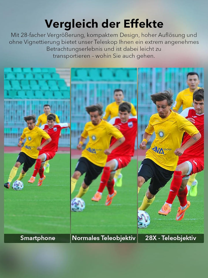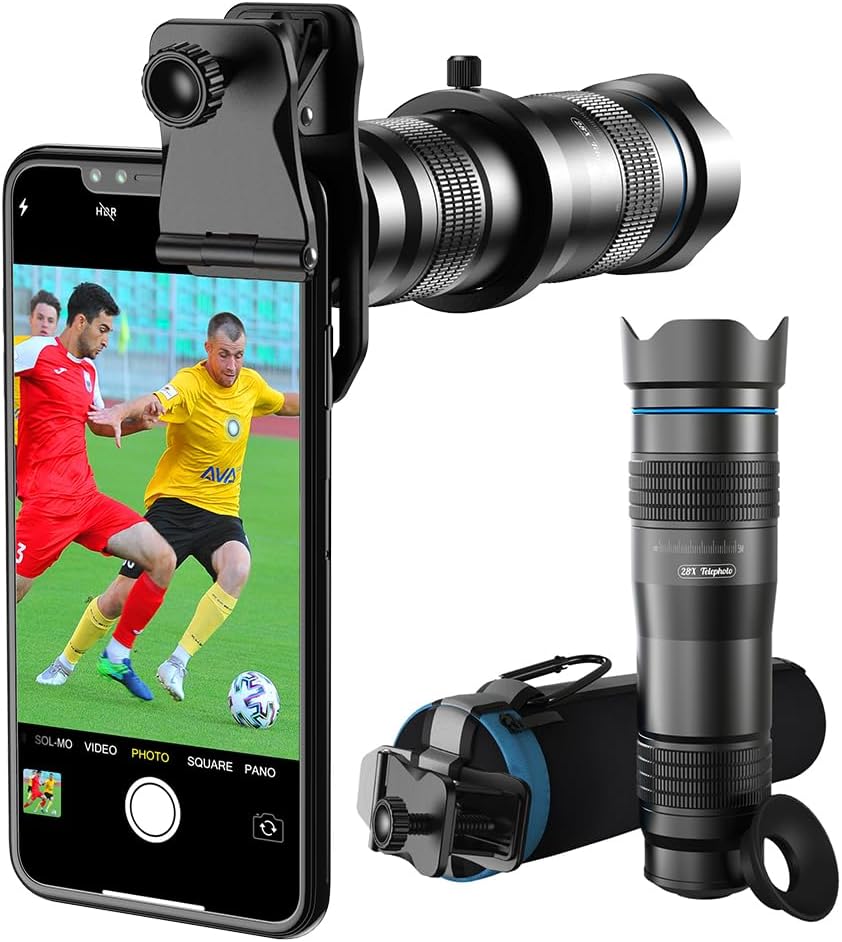- HD-Teleskop: 28-fache Langzeitaufnahmen handy objektiv können klare Ziele aufzeichnen, ein Fernfokus-Teleskop mit einer Augenmaske kann für Fernaufnahmen verwendet werden (es kann ohne Telefon als einzelnes Auge verwendet werden, leicht zugänglich).